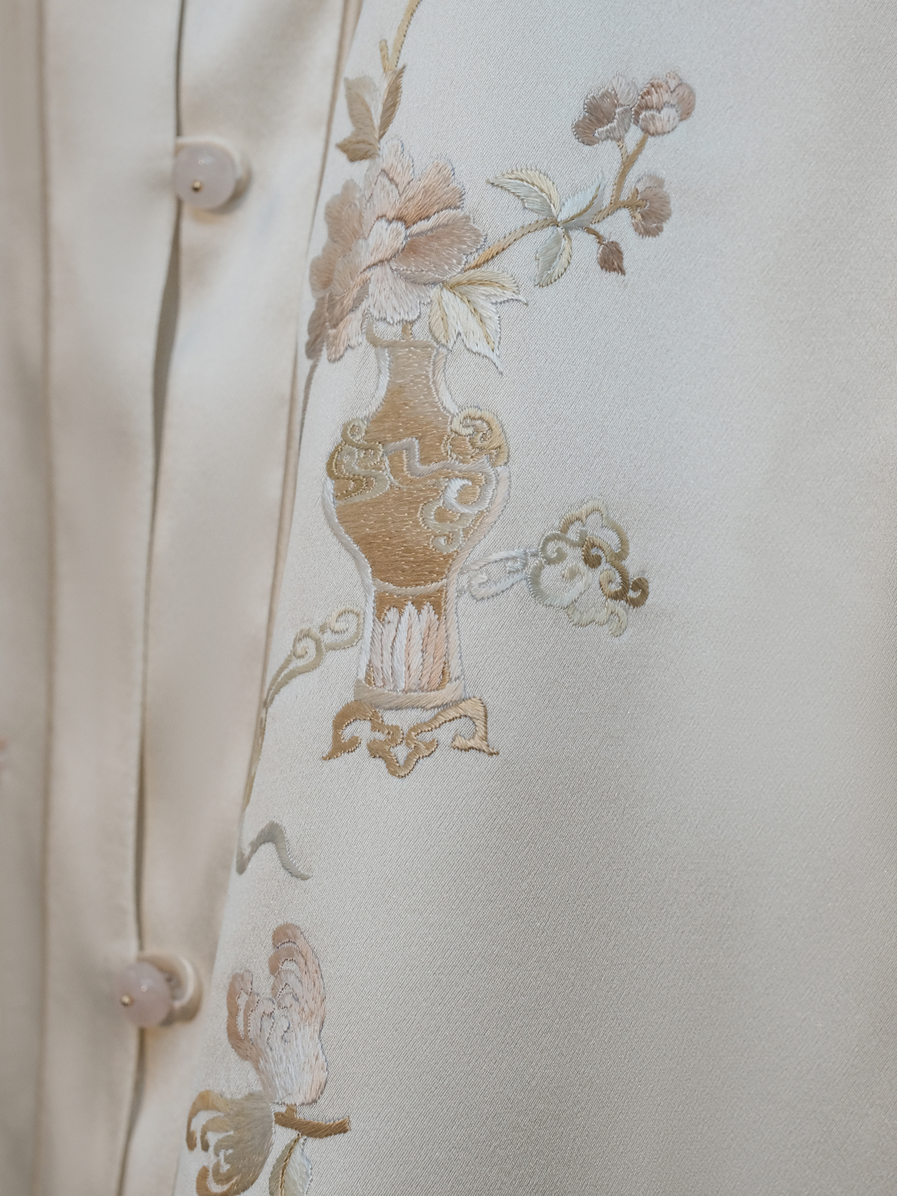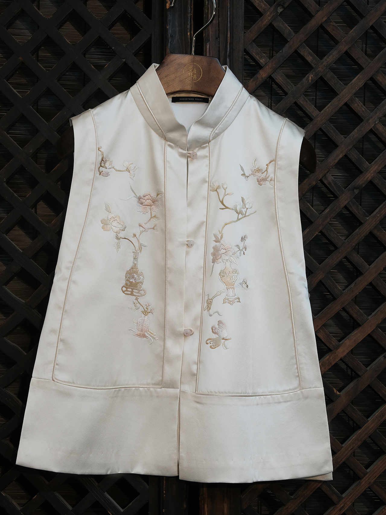 盛唐牡丹|博古宝瓶纹手绣真丝马甲