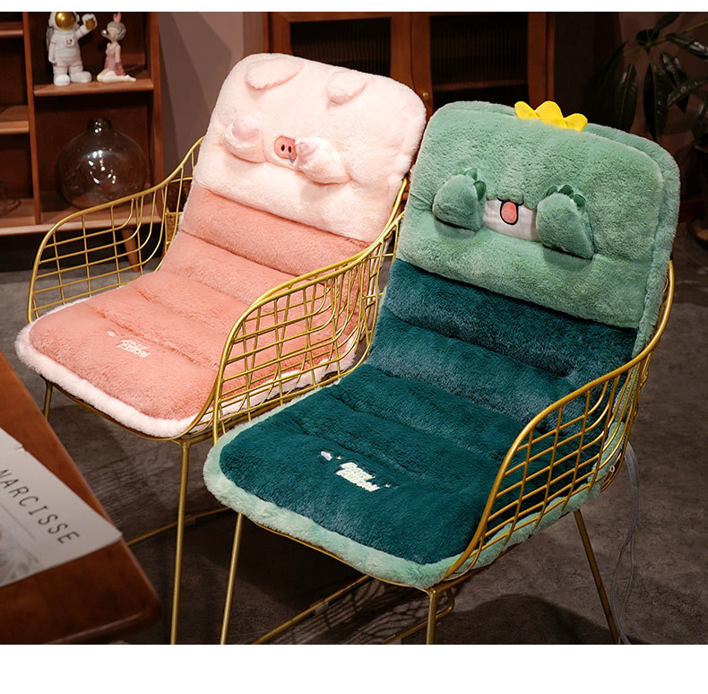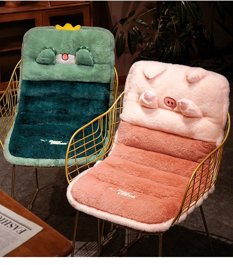 【兔毛绒连体坐垫,厚实饱满,倚靠舒适,造型可爱】坐垫屁垫 椅子靠垫靠背一体 加厚毛绒办公室久坐神器座椅 学生宿舍冬季垫子-QQ
