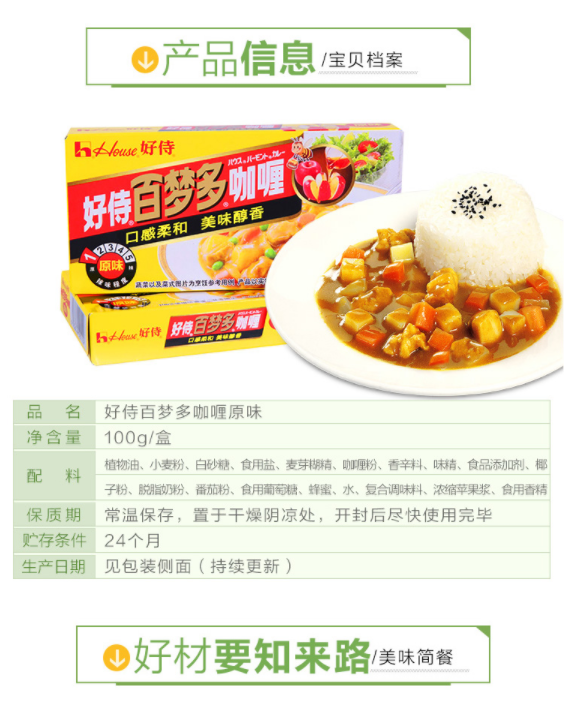 好侍百梦多咖喱100g/盒,保质期24个月