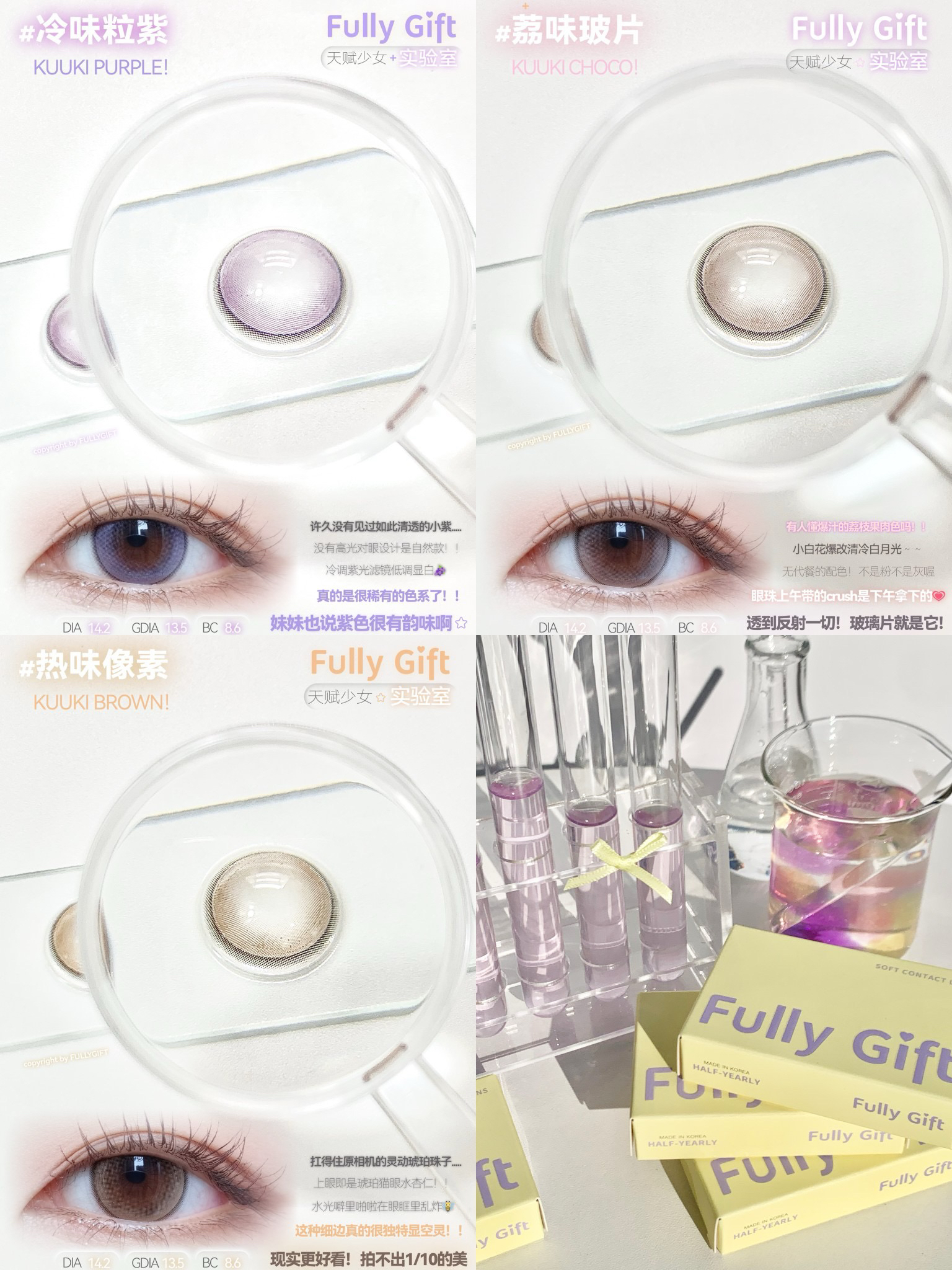 FULLY GIFT 冷味粒紫/荔味玻片/热味像素 直径14.2 着色13.5 半年抛