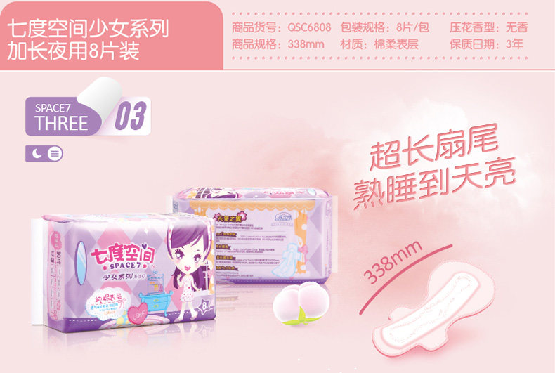 纯棉超薄超长夜用338mmx1包 8片
