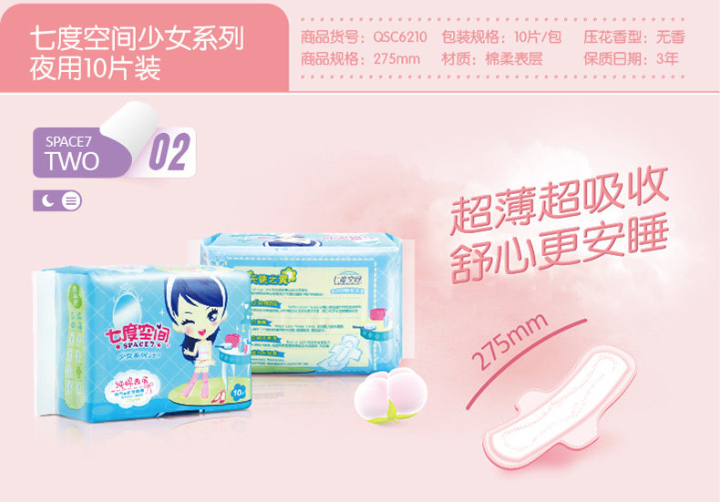 纯棉超薄夜用275mmx1包 10片
