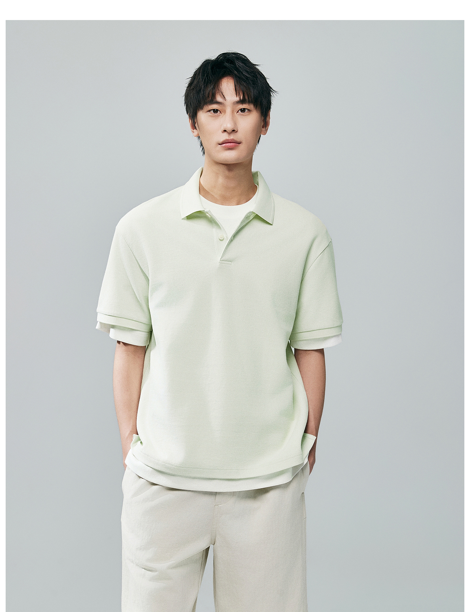 棉仓363802007-微宽松全棉六角大眼珠地翻领短袖POLO