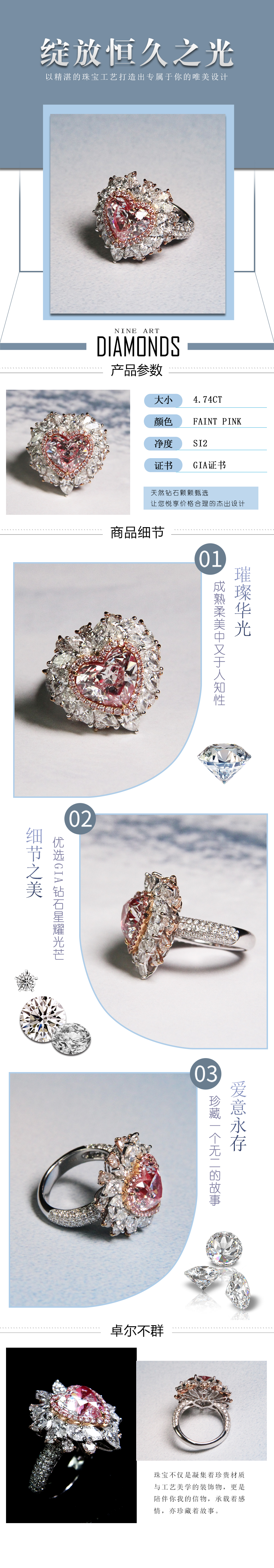 天然粉钻戒指4.74克拉