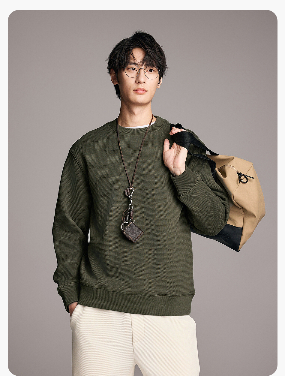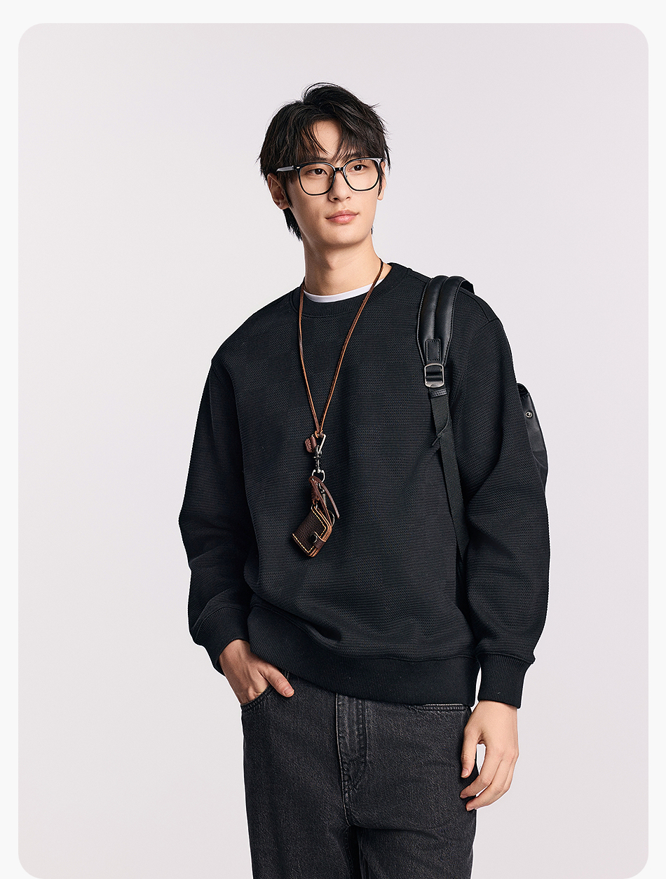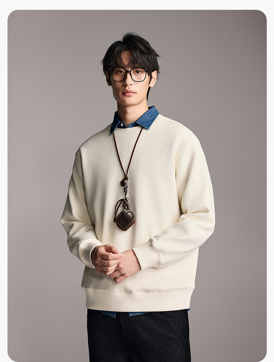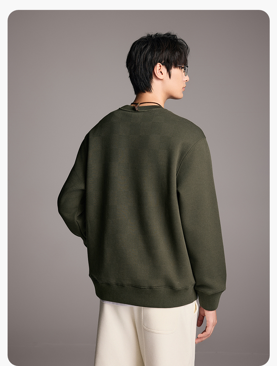 棉仓357808001-重磅提花棋盘格复合摇粒绒宽松廓型圆领卫衣
