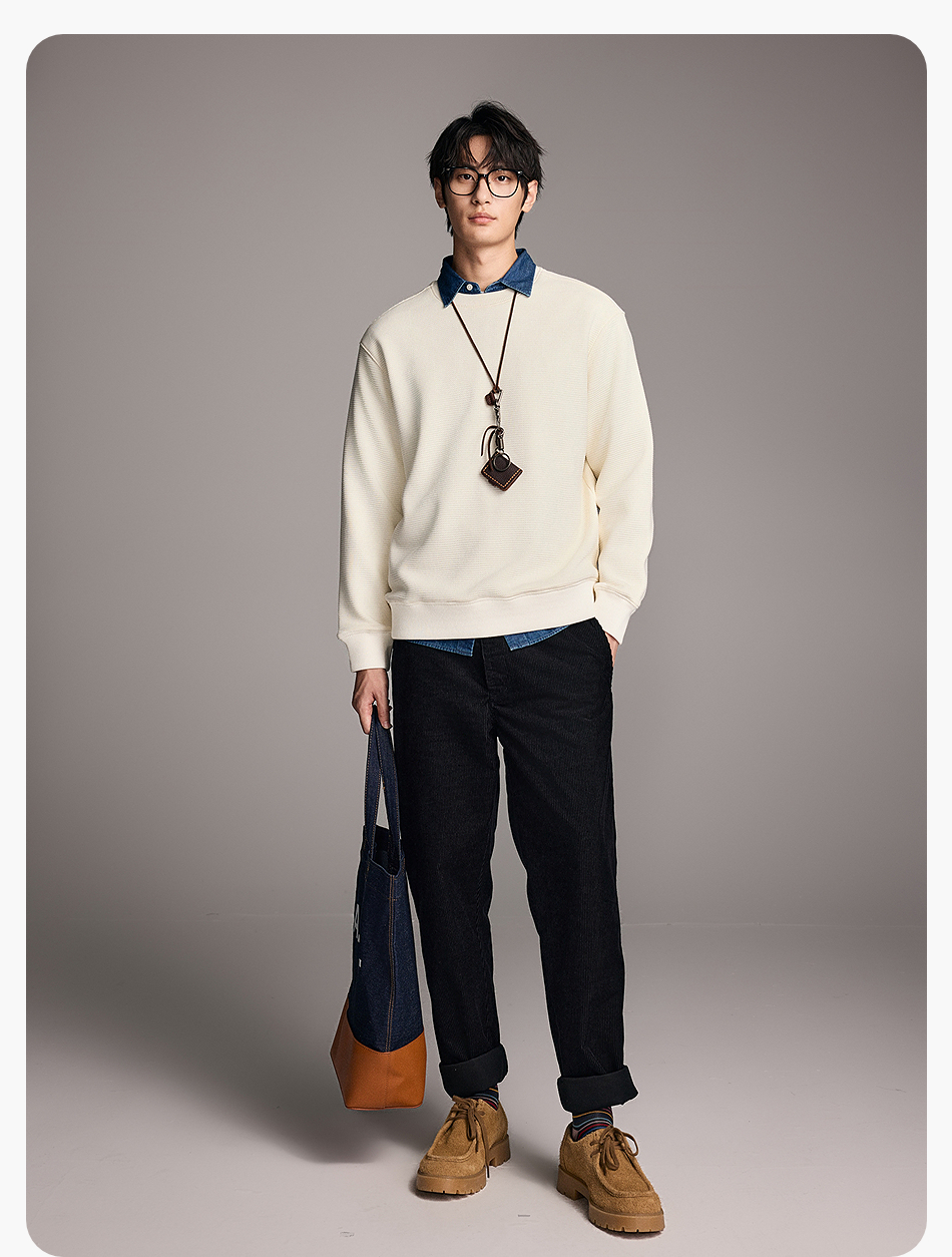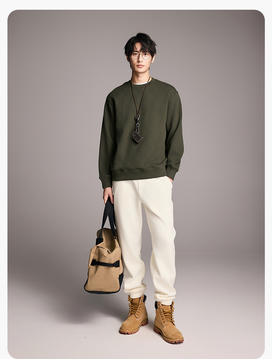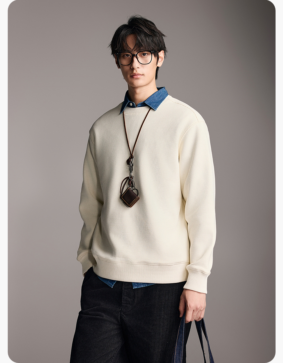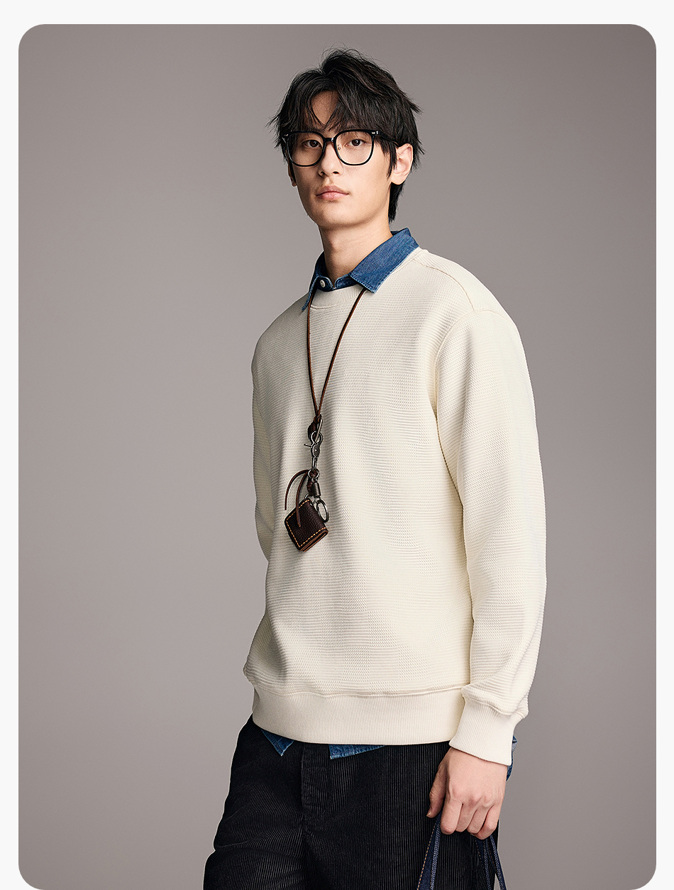 棉仓357808001-重磅提花棋盘格复合摇粒绒宽松廓型圆领卫衣