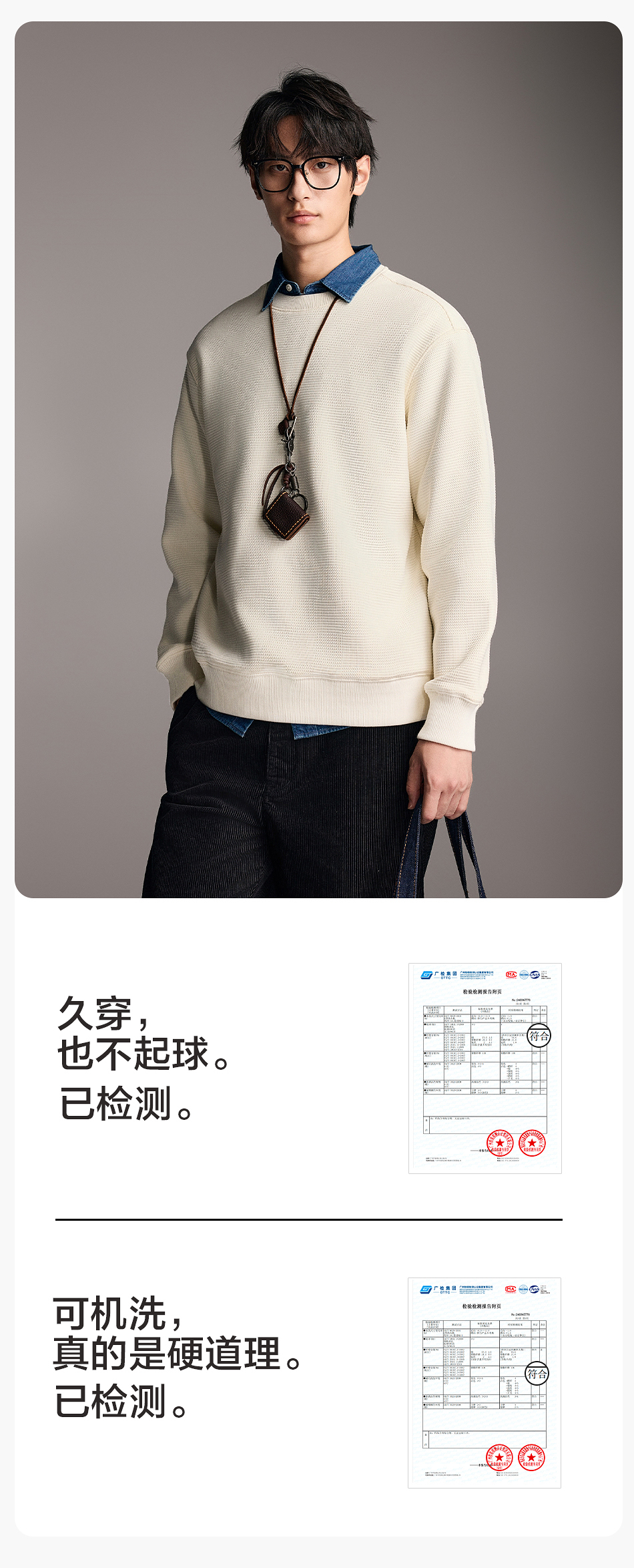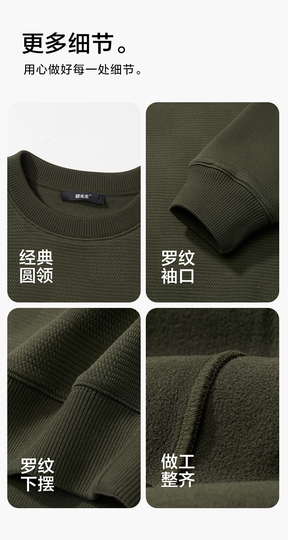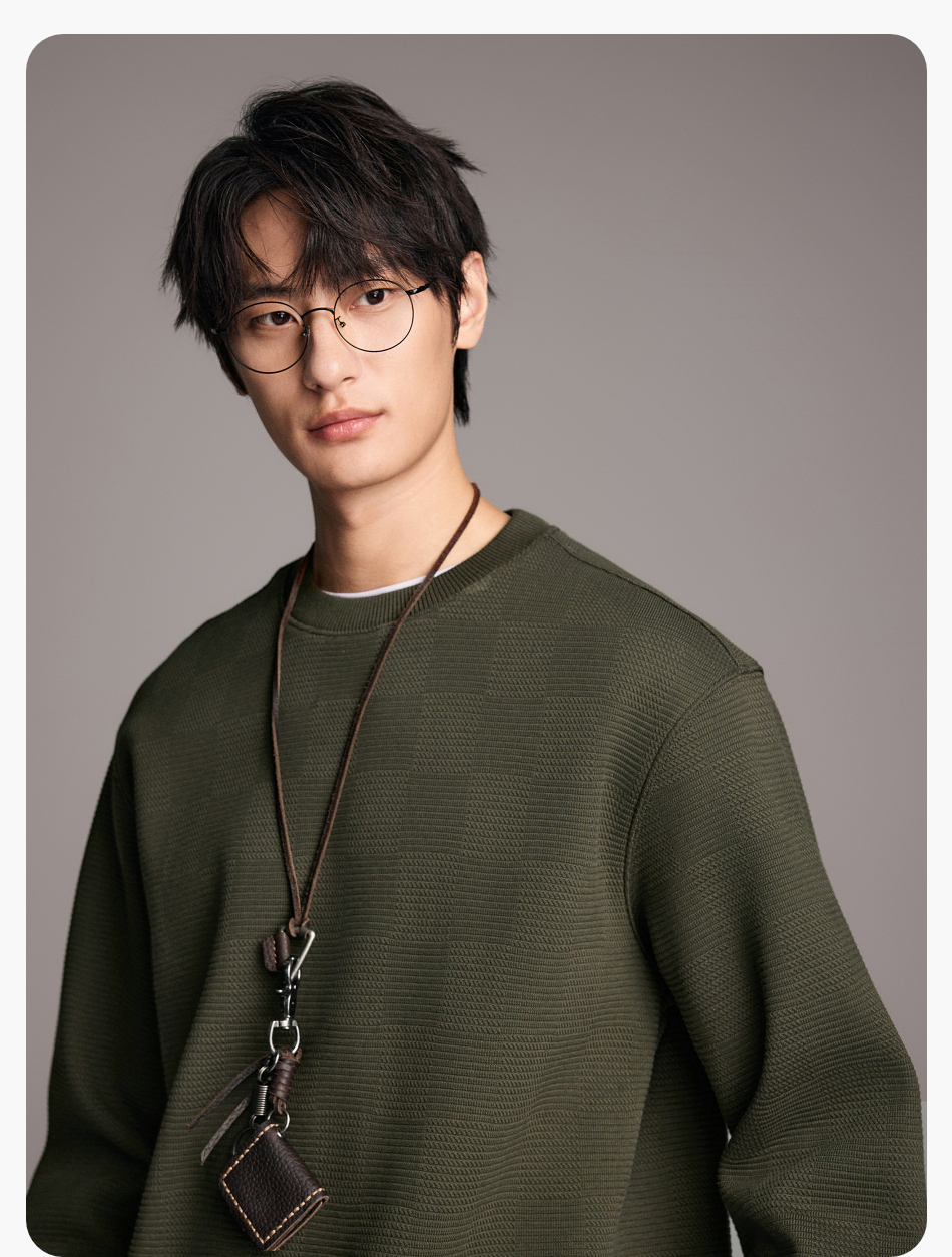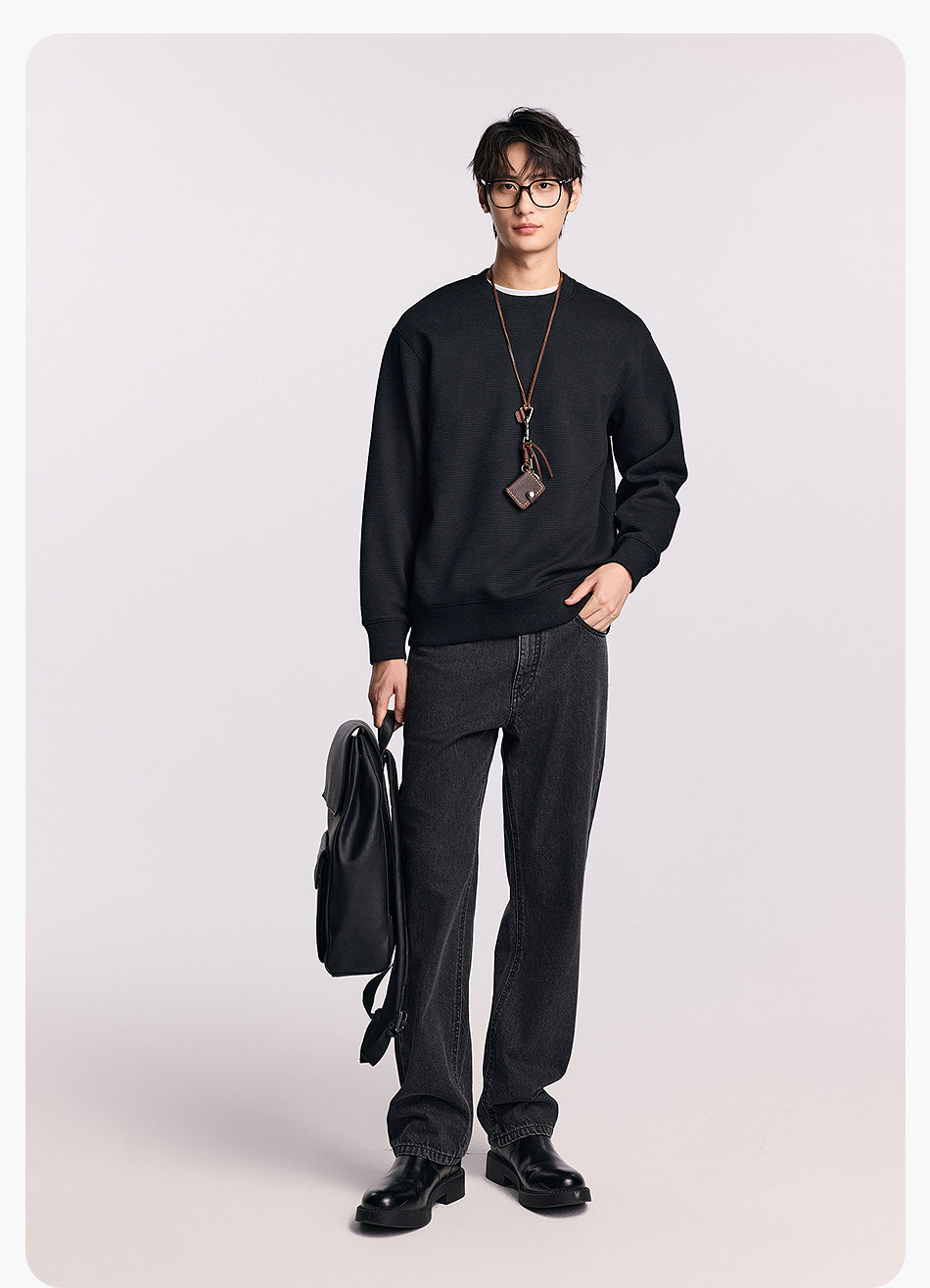 棉仓357808001-重磅提花棋盘格复合摇粒绒宽松廓型圆领卫衣