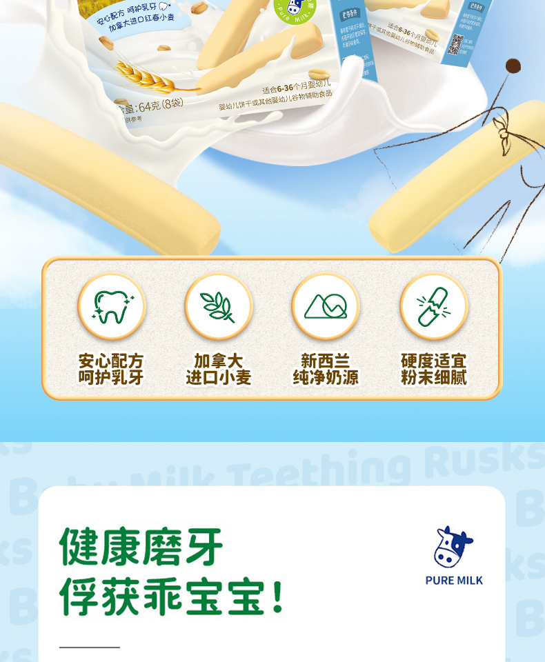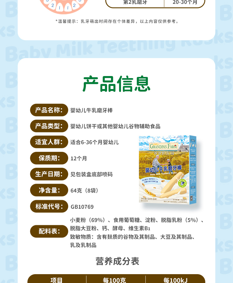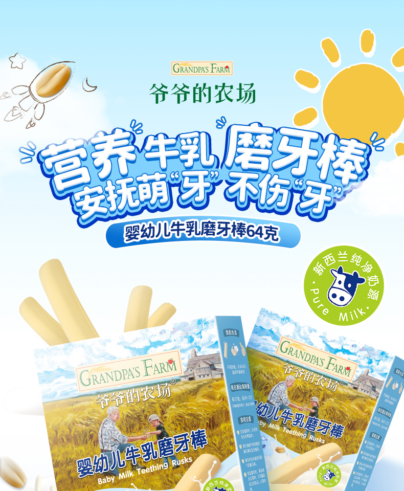爷爷的农场婴幼儿牛乳磨牙棒64g