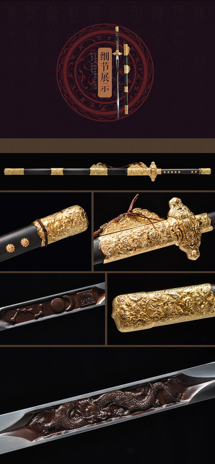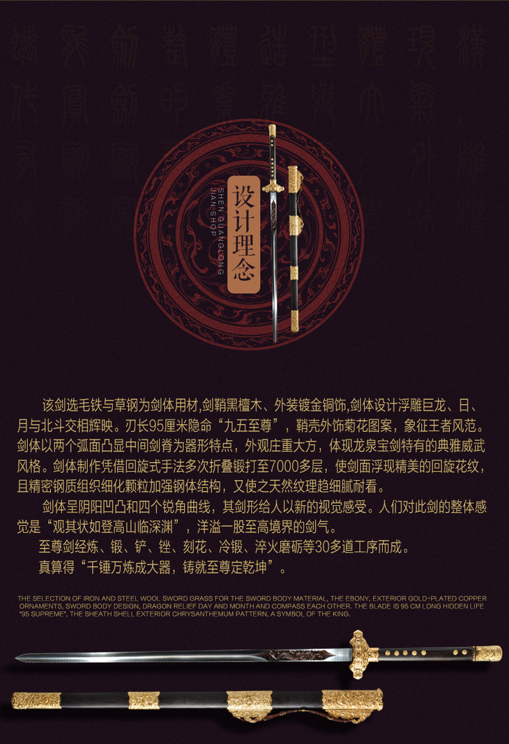 至尊剑 中国工艺美术大师-沈新培作品 龙泉沈广隆宝剑 工艺品 未开刃