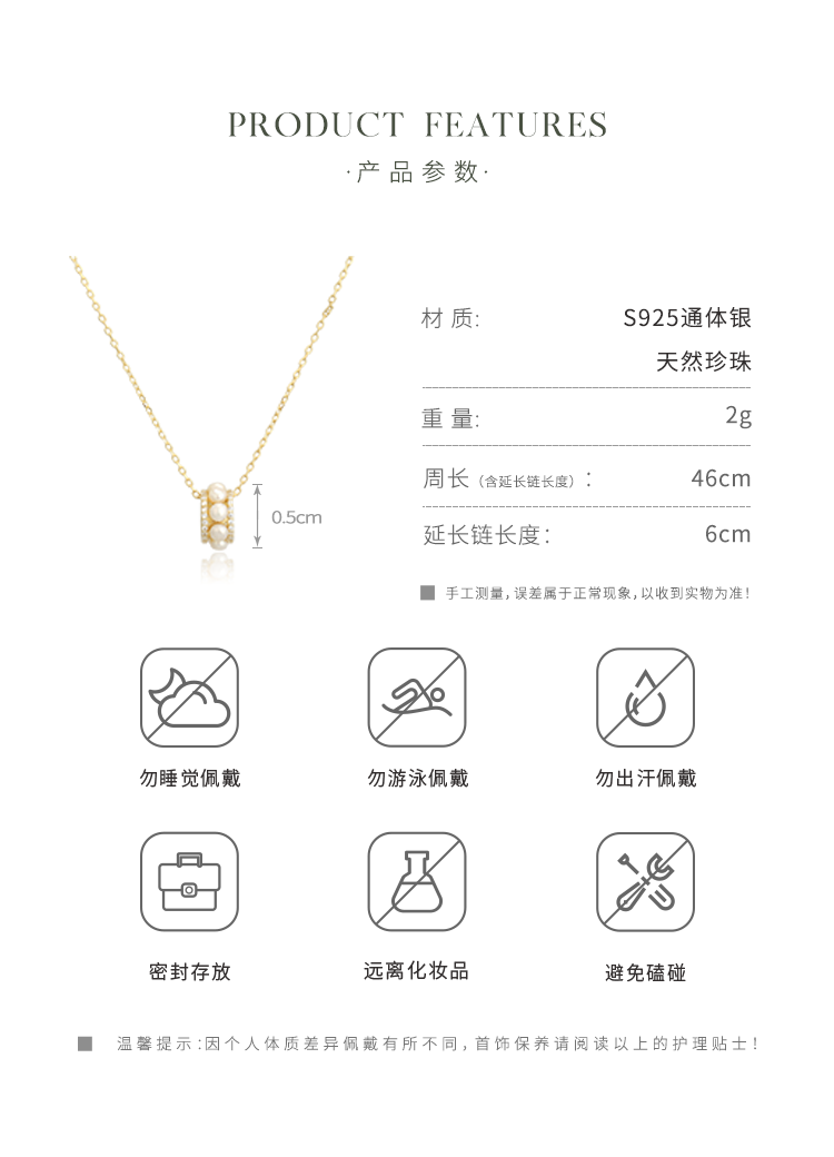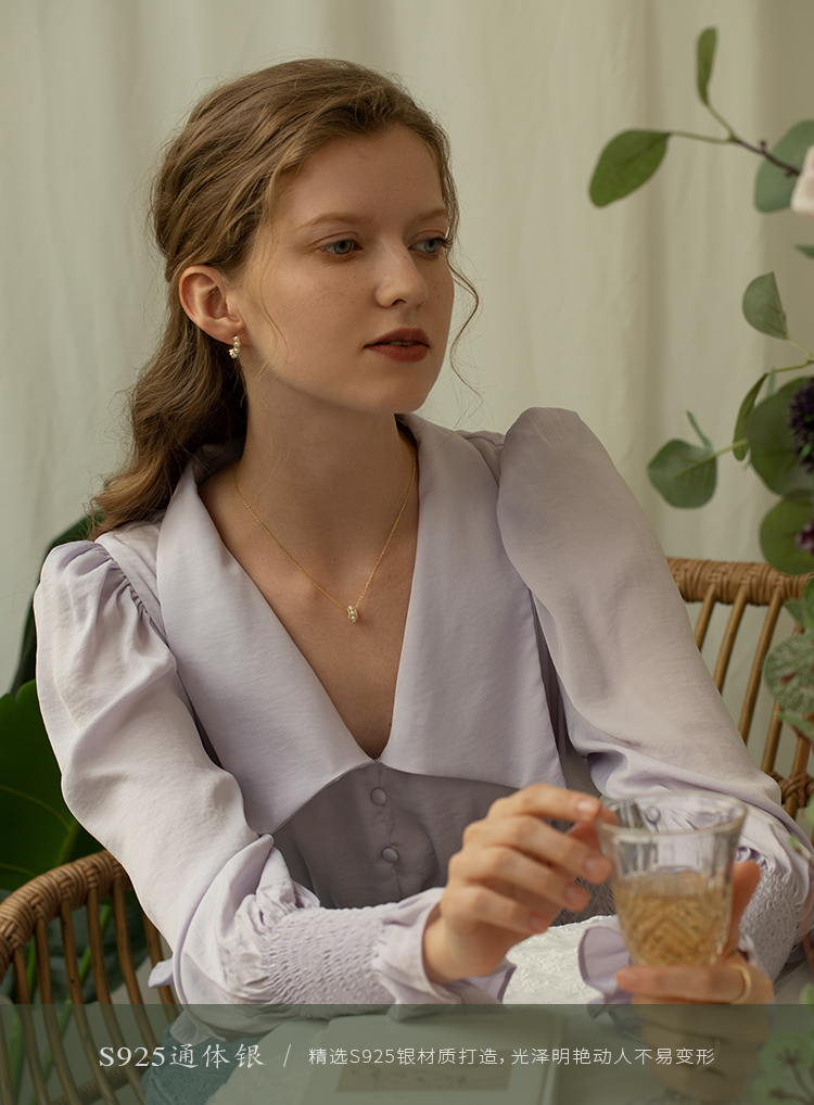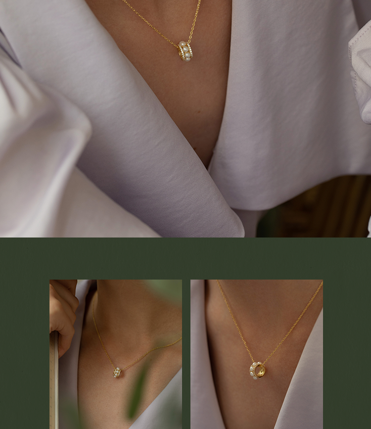 【包邮】Oflye潮流饰品 S925通体银项链女时尚天然珍珠吊坠气质锁骨链个性小众设计感饰品