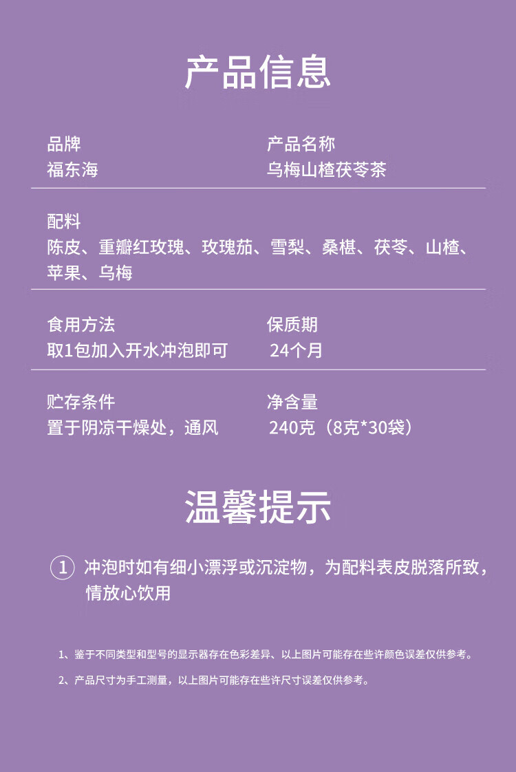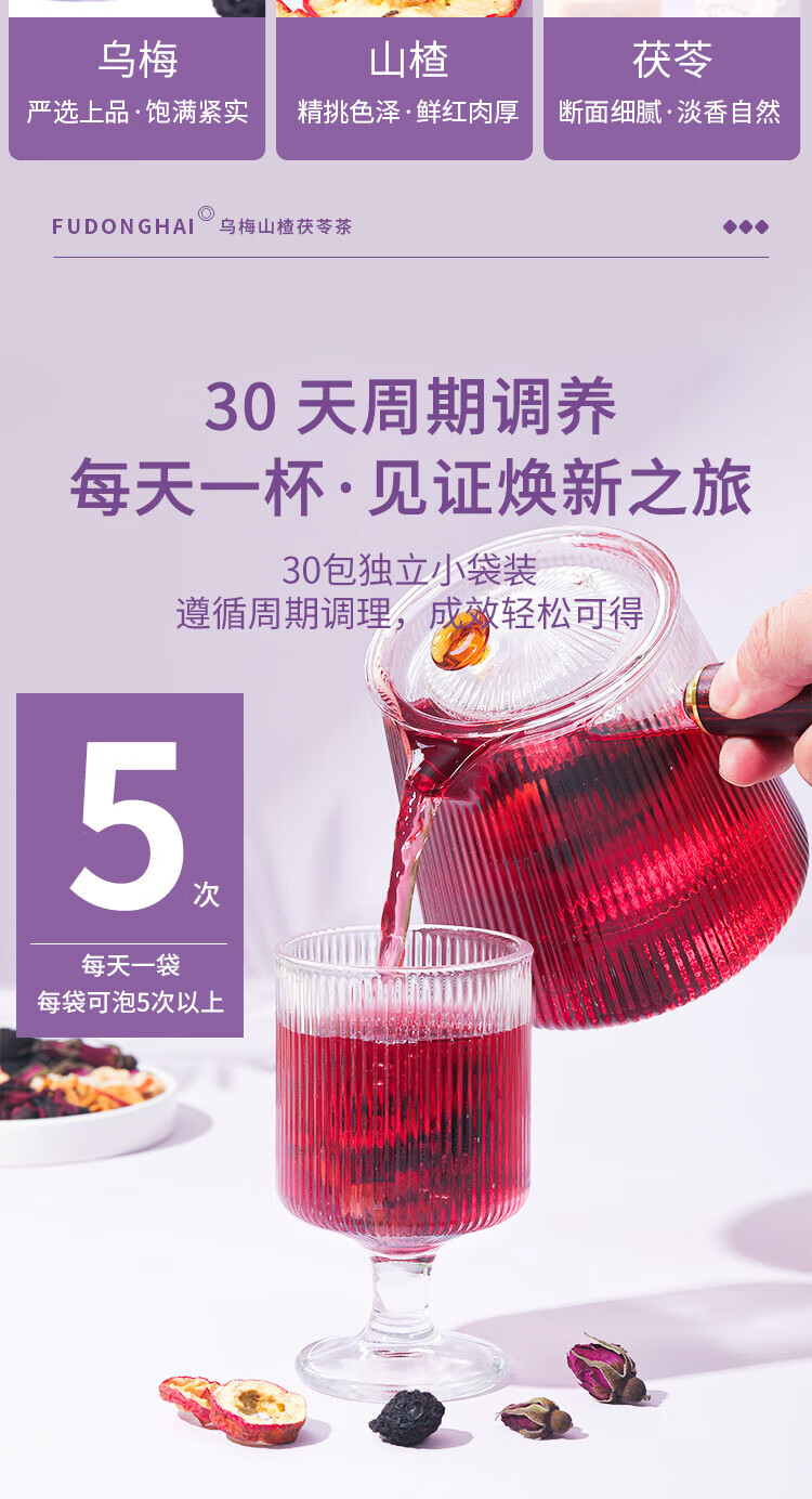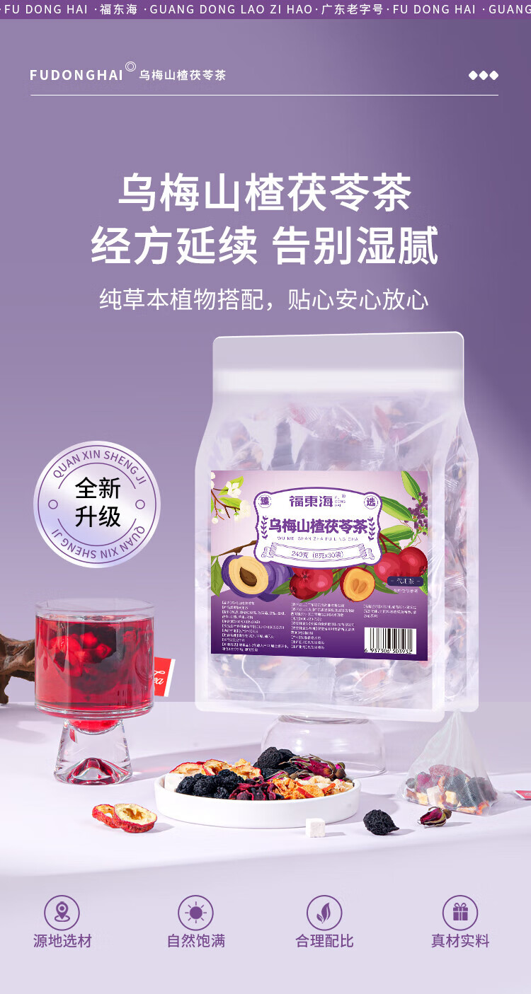 福东海 苹果乌梅山楂茯苓茶240克【30袋】桑葚玫瑰雪梨陈皮消消茶油茶刮养生 【油刮茶】
