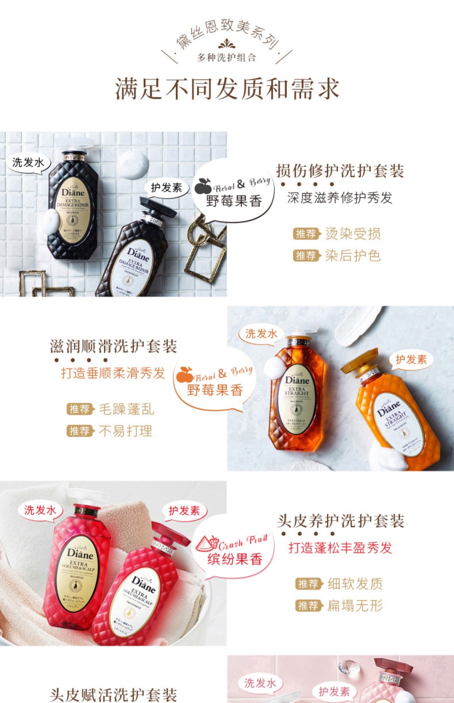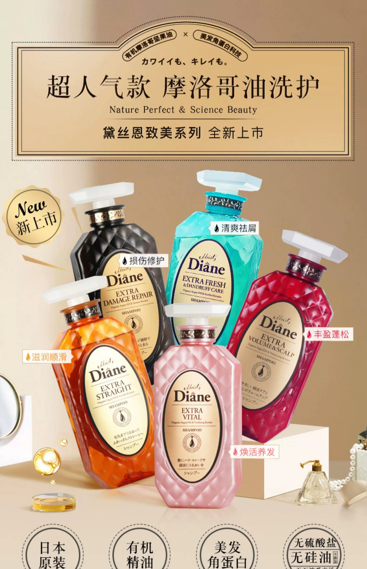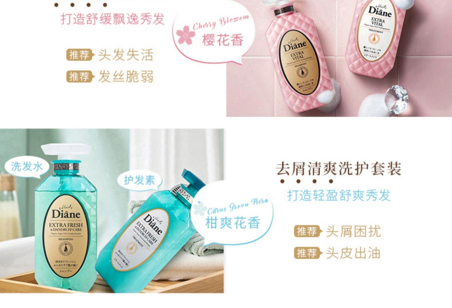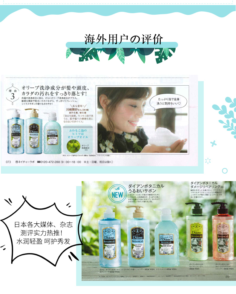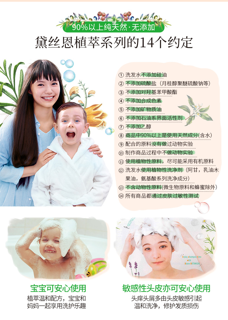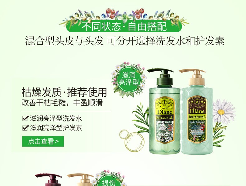 黛丝恩Moist Diane无硅油洗发水植萃水润轻盈型480ml/瓶