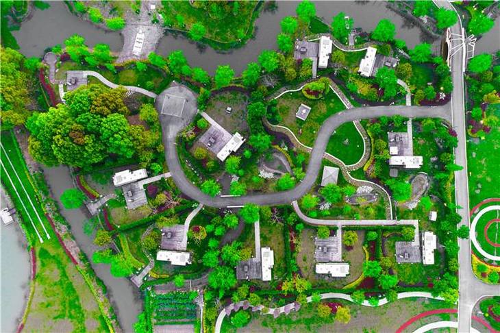 一边是现代化的博览中心,一边是水乡古朴景区~