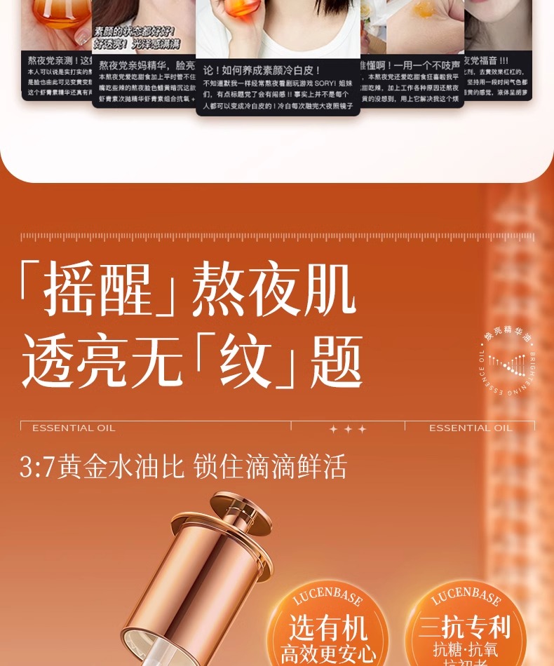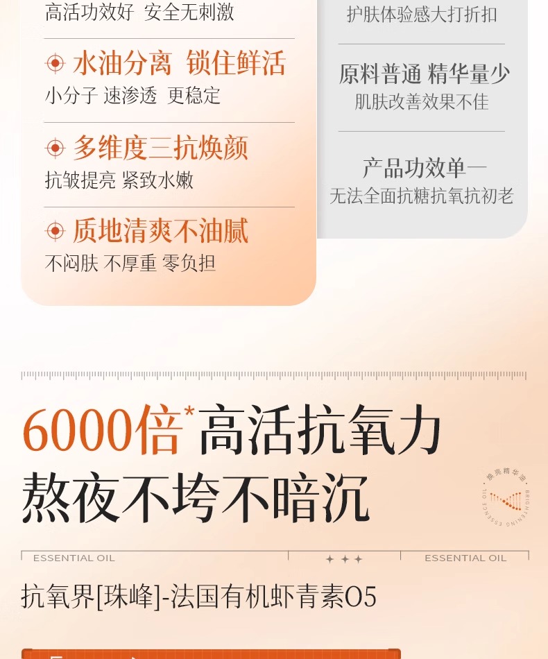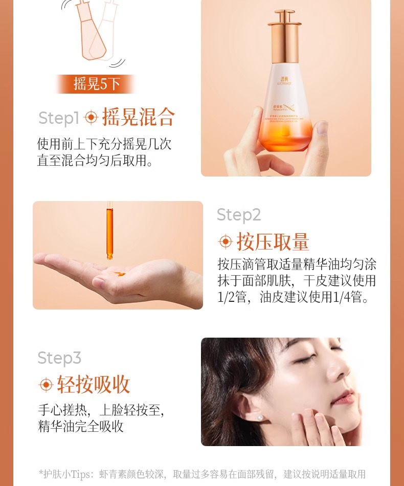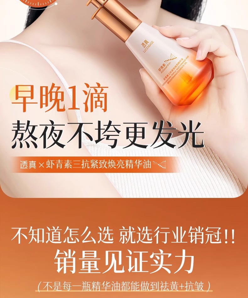 【早晚1滴 熬夜不垮更发光】虾青素三抗紧致焕亮精华油55ml#虾青素精华油美白提亮去黄改善暗沉双抗紧致抗皱抗衰老官方旗舰店