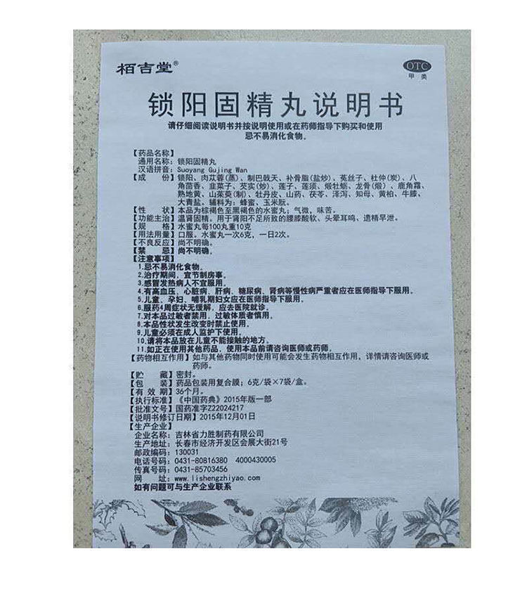 栢吉堂锁阳固精丸7袋/盒温肾腰膝酸软遗精早泄金锁固精精丸补肾虚