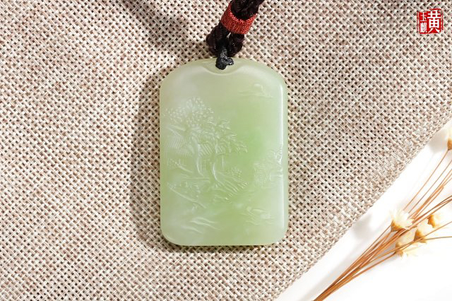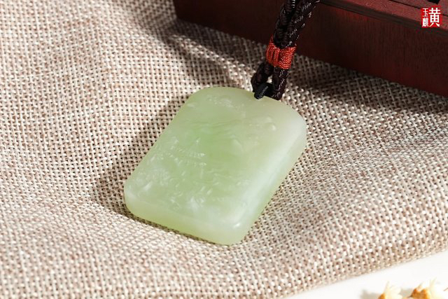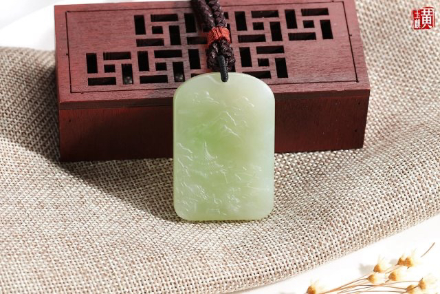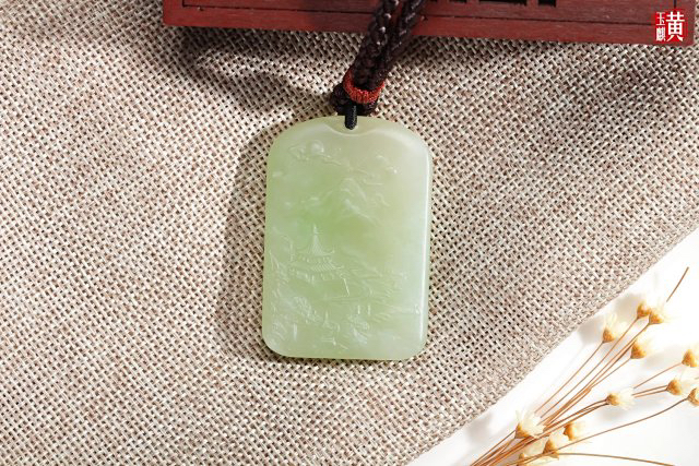 和田玉翠青【山水风光】吊坠 配精美编织挂绳
