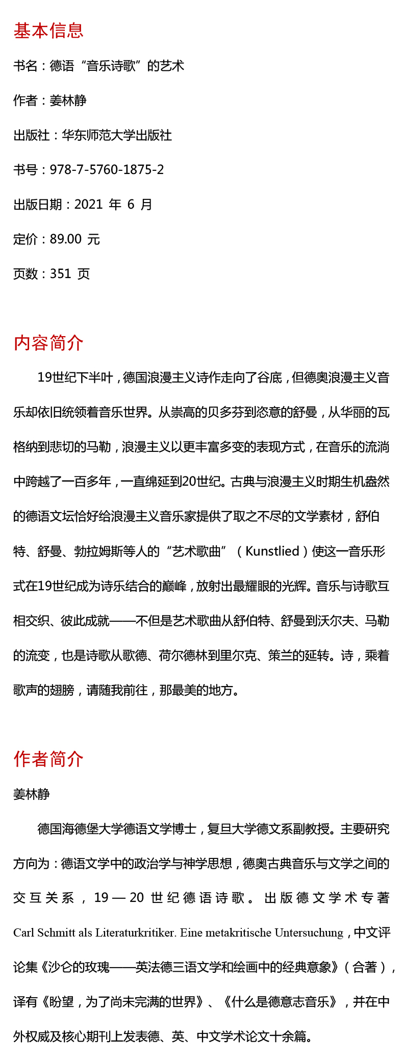德语"音乐诗歌"的艺术 姜林静著 十九首世界诗歌批评本丛书 诗歌鉴赏
