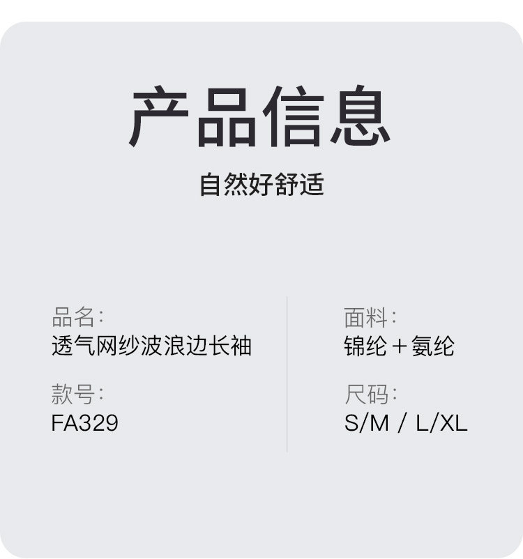 FA329透气网纱波浪边长袖