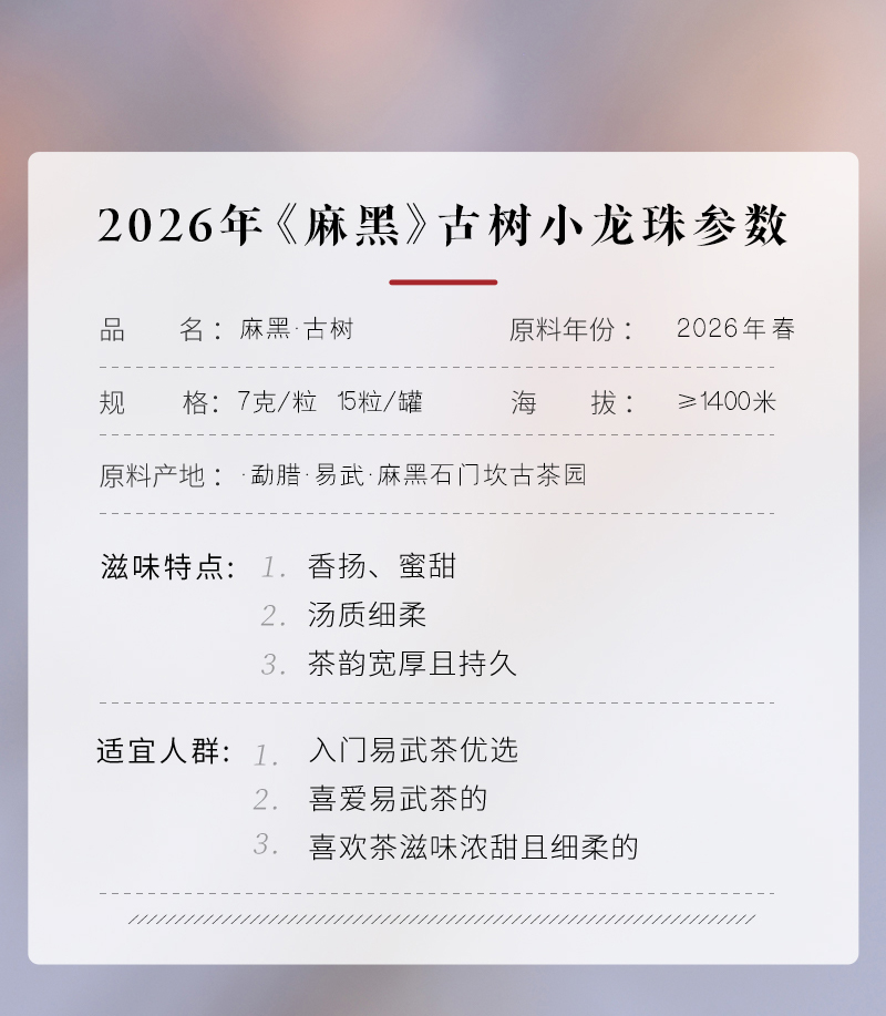 【预售6折】2026《麻黑》古树春茶小龙珠 7克*15颗 生茶