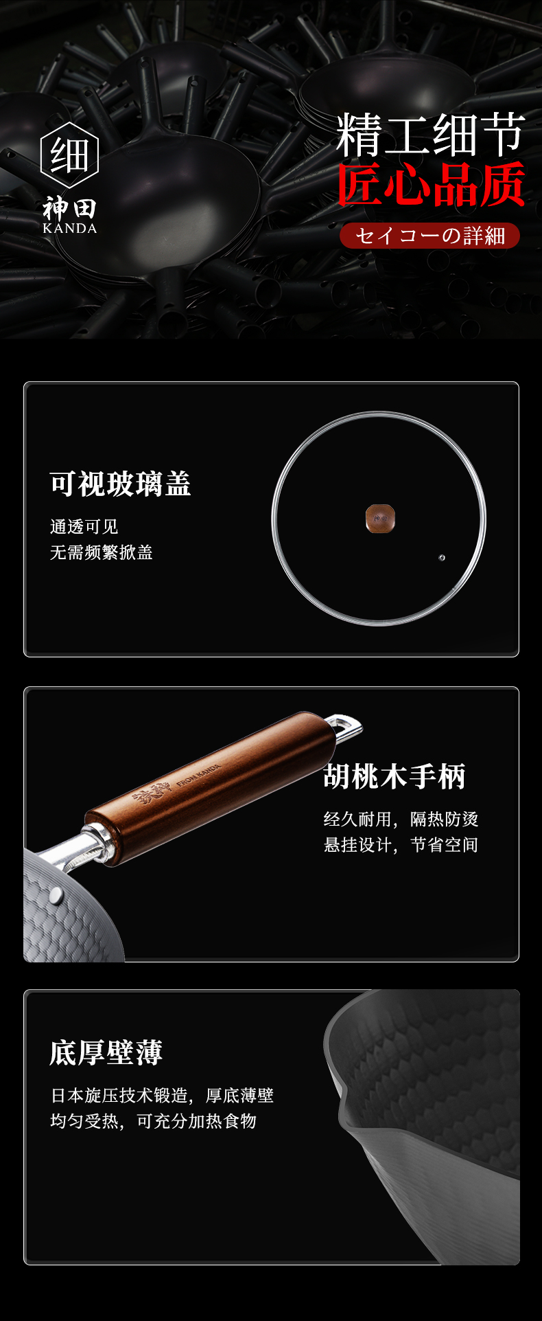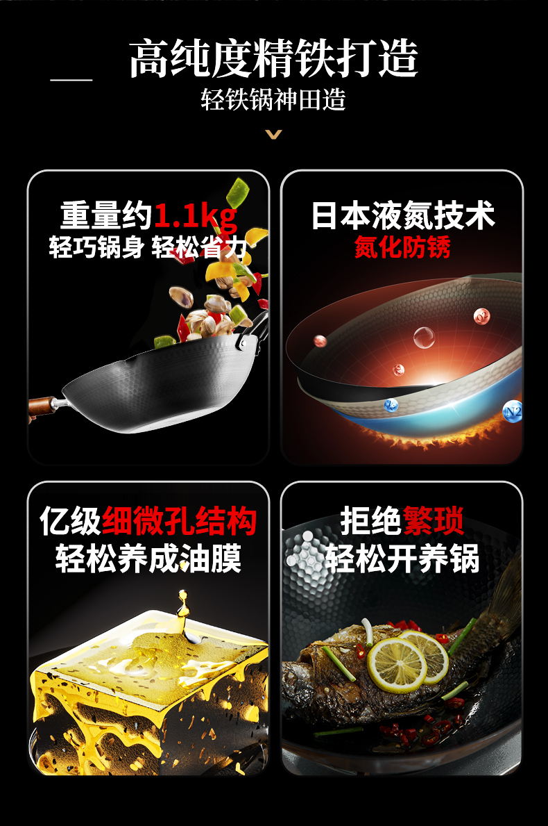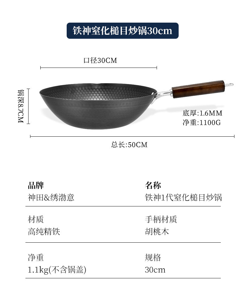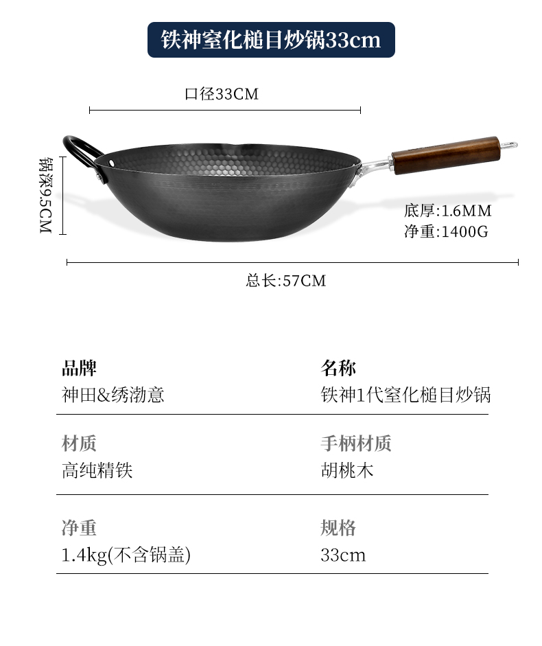 【限时价】神田KANDA 窒化槌目系列中华铁锅