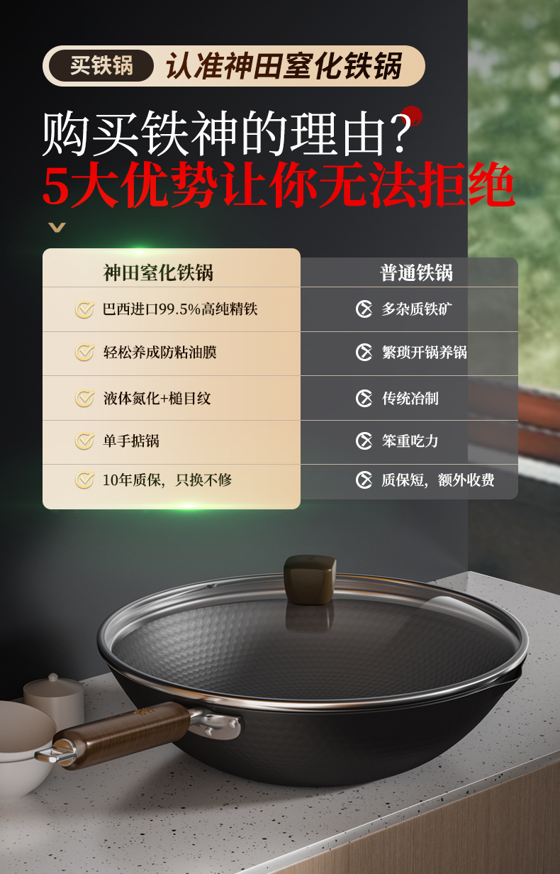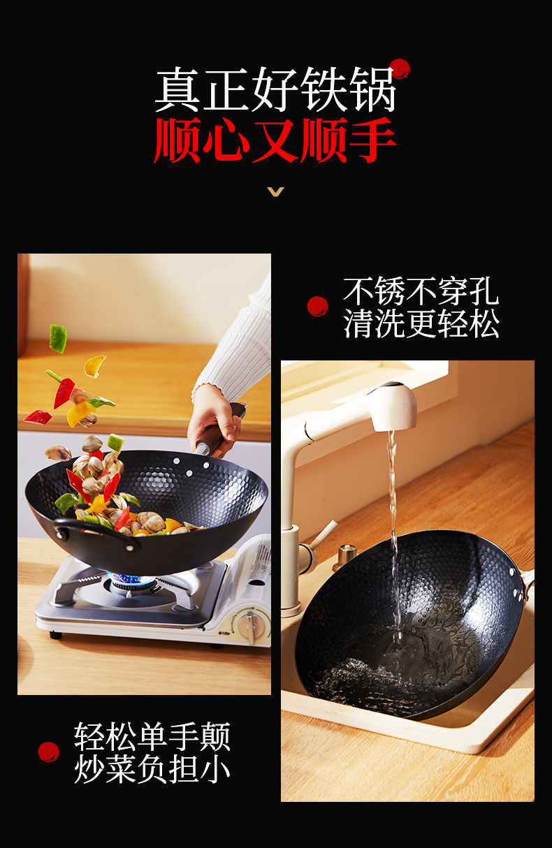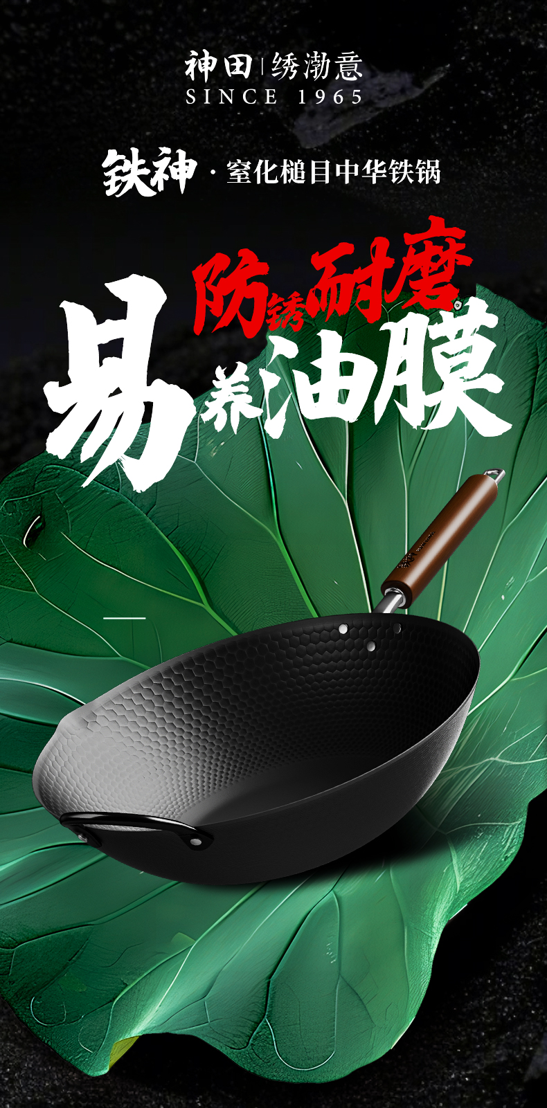 【限时价】神田KANDA 窒化槌目系列中华铁锅