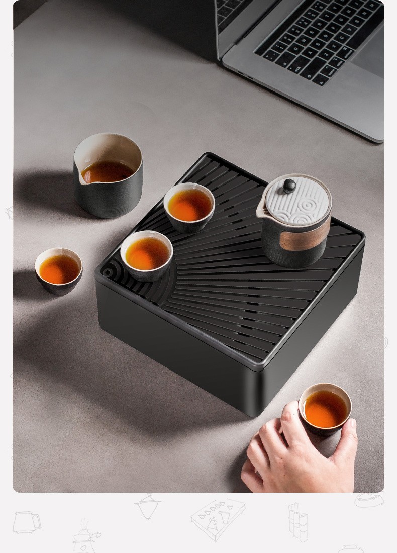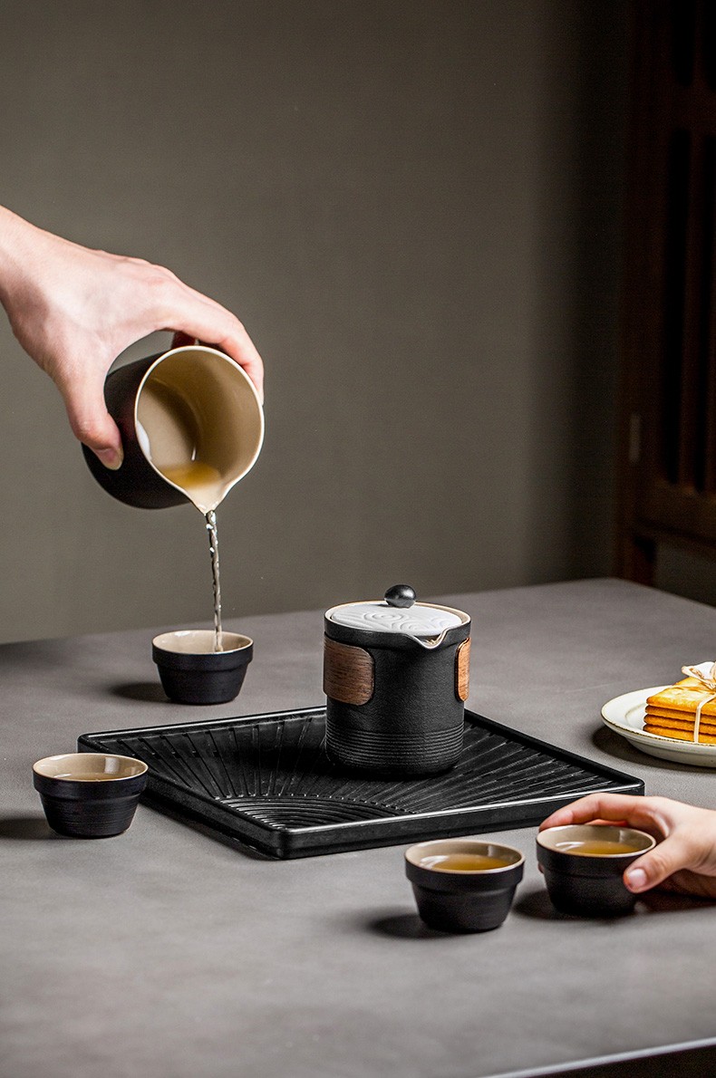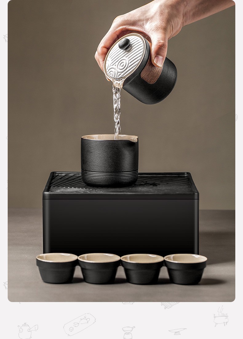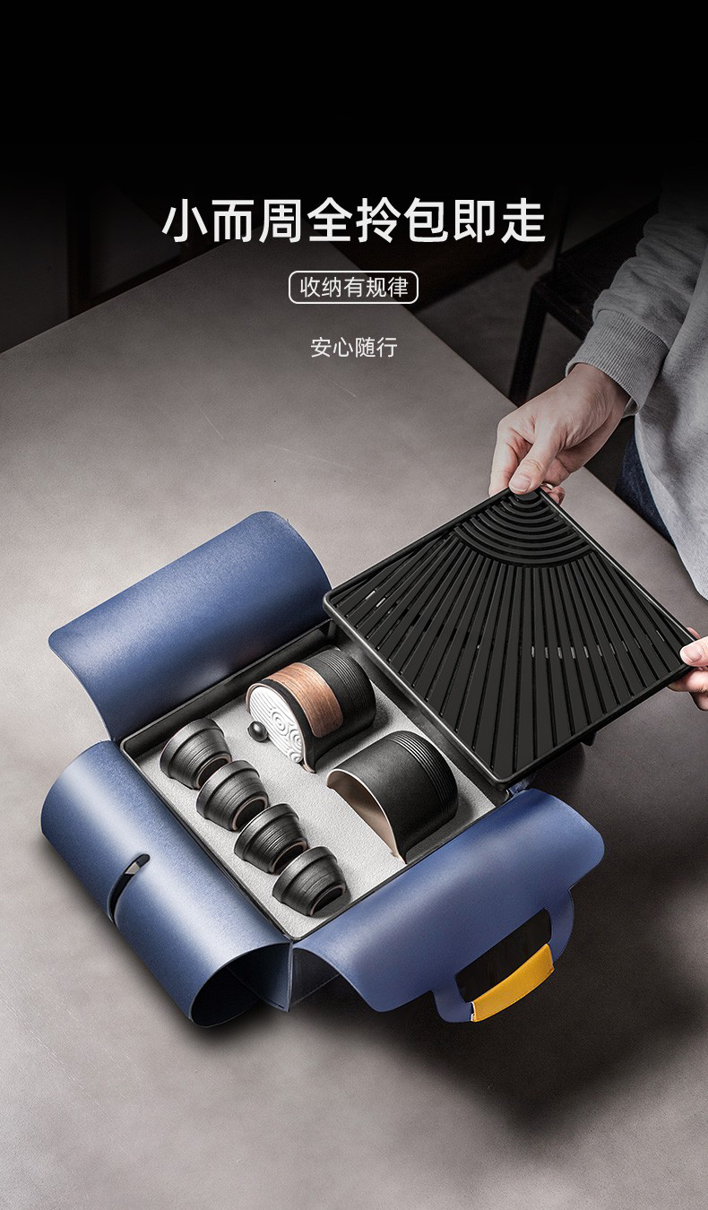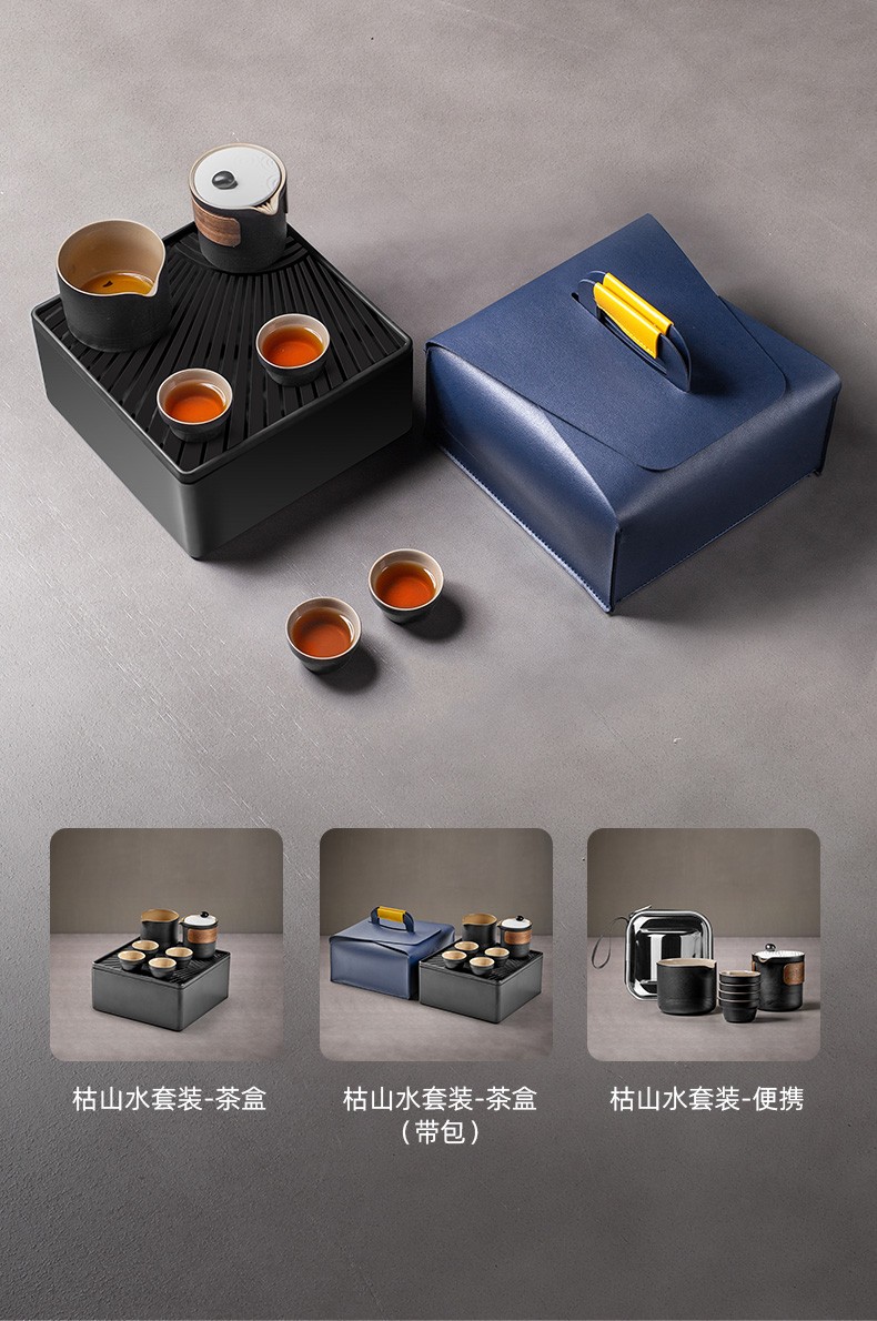 旅行茶具套装便携快客杯收纳包一壶四杯车载功夫茶具户外泡茶小套 枯山水套装-车载(带包)