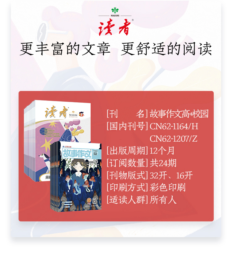 此为2026年《读者》(校园版)+《故事作文·高年级版》杂志征订预售链接。下单后48小时内,将为您发出专属订阅赠品。