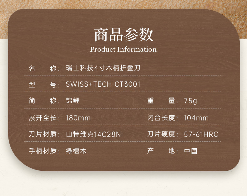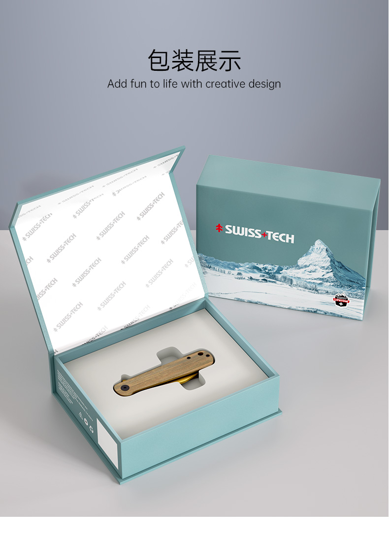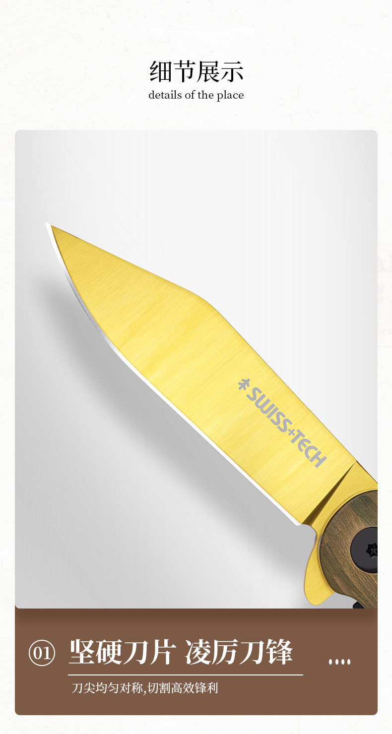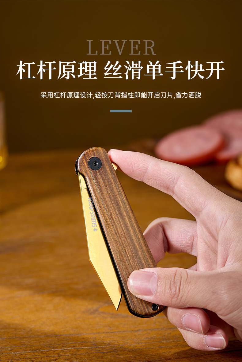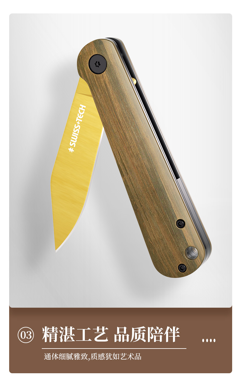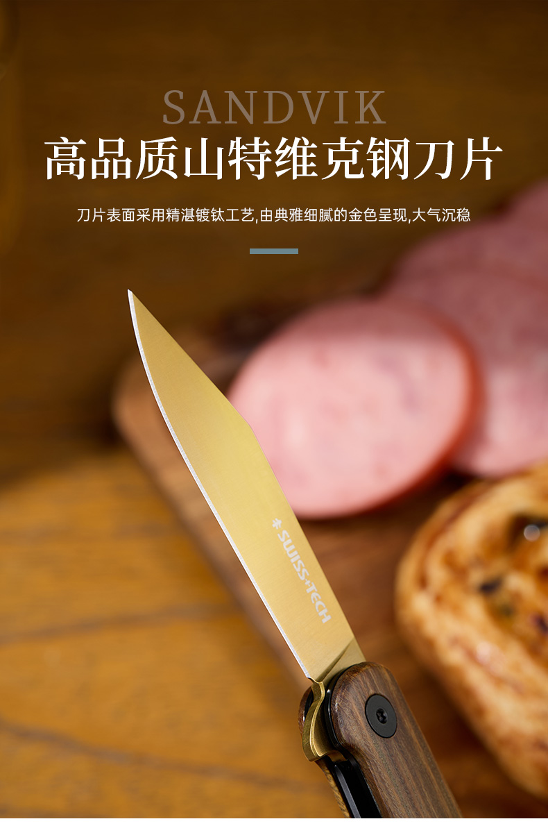 SWISS+TECH 瑞士科技木柄折叠刀户外露营探险EDC小刀-分销