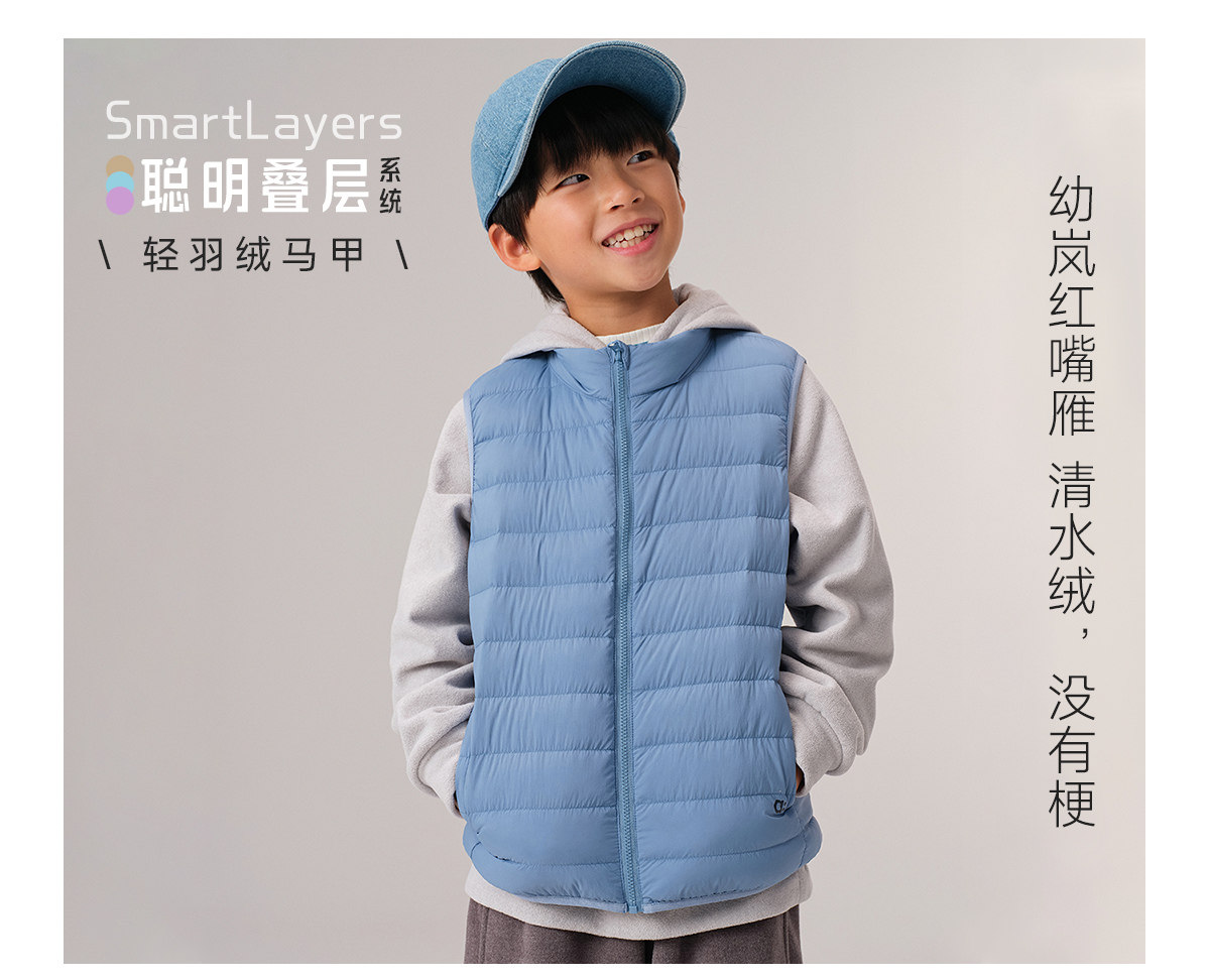 【秋Vol.5】allblu幼岚【聪明叠层】轻羽绒马甲儿童马甲A类红嘴雁蓬松保暖ZY
