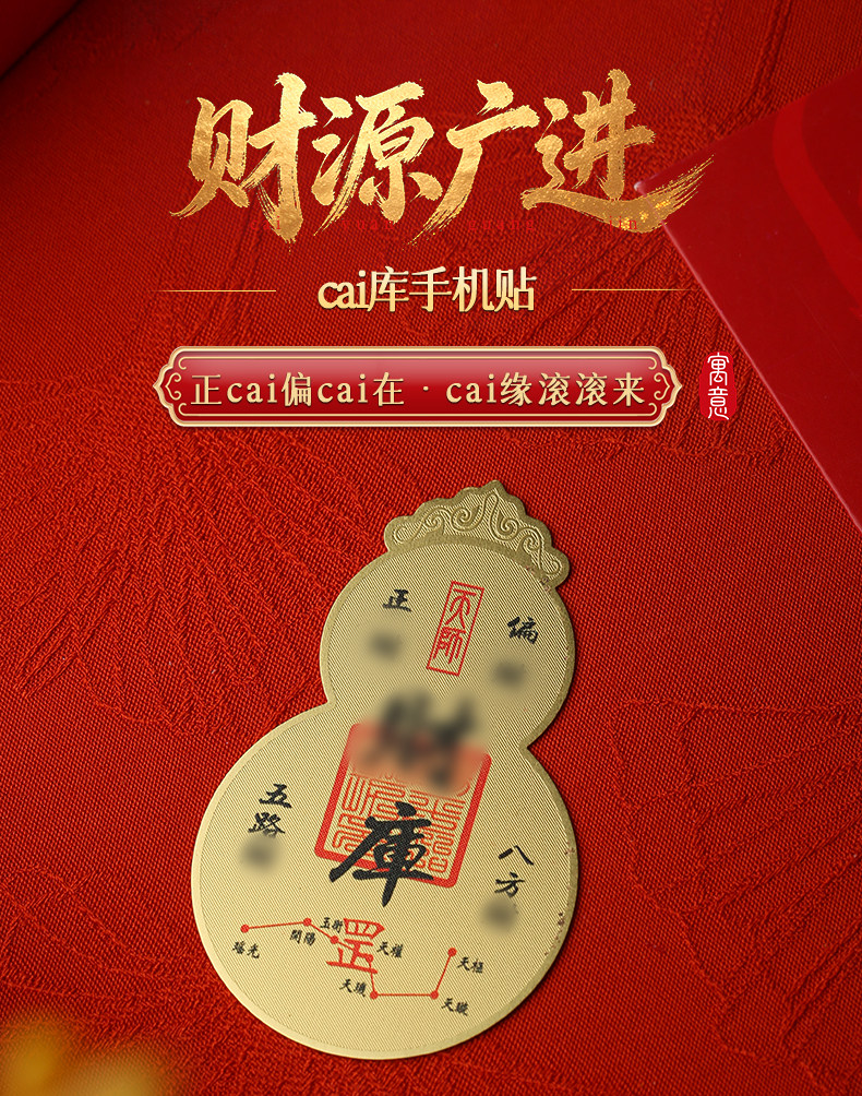 【祈愿吉品】财源广进财运葫芦金卡手机贴