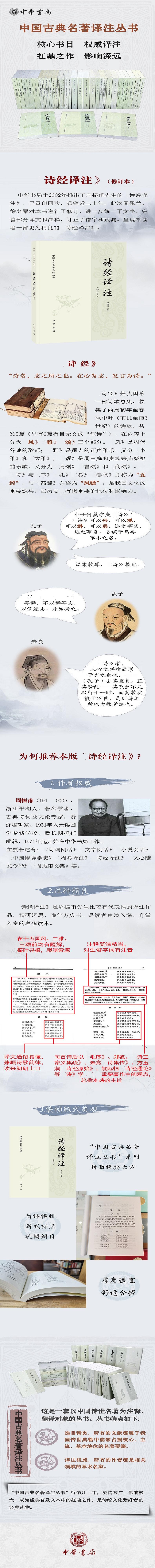《诗经译注》是周振甫先生较有代表性的译注作品,成书于周老晚年。该书由中华书局于2002年推出后,至今已重印四次。此次修订,周佩兰、徐名翚对书稿进行了细致认真的加工,对诗篇的各章译文,作了文字上的统一;对有的译文和注释,根据周老生前发表的有关文章和老人家讲解《诗经》时所作的笔录,略作改动;对一些错字和疏漏,作了订正。