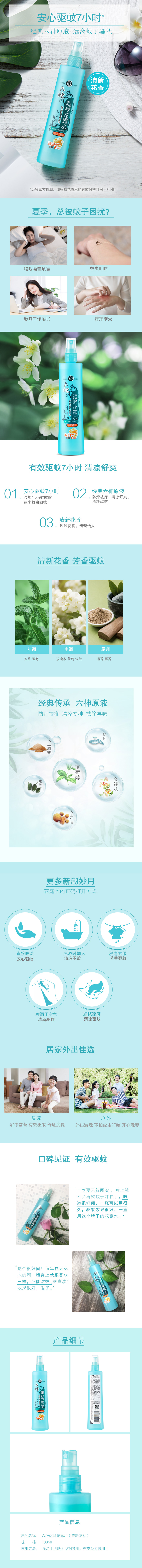 六神驱蚊花露水喷雾清新花香180ml/瓶 驱蚊止痒花香