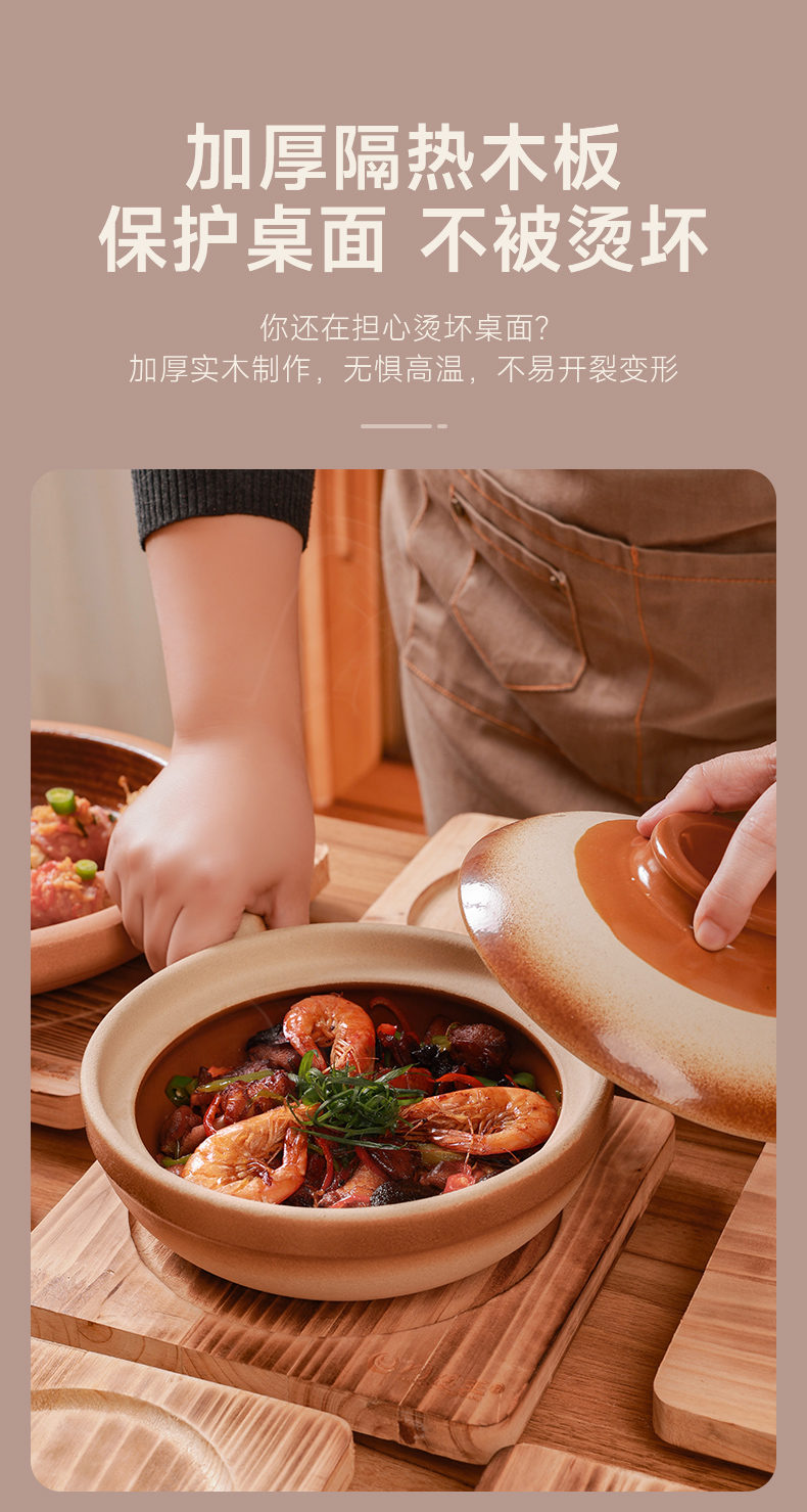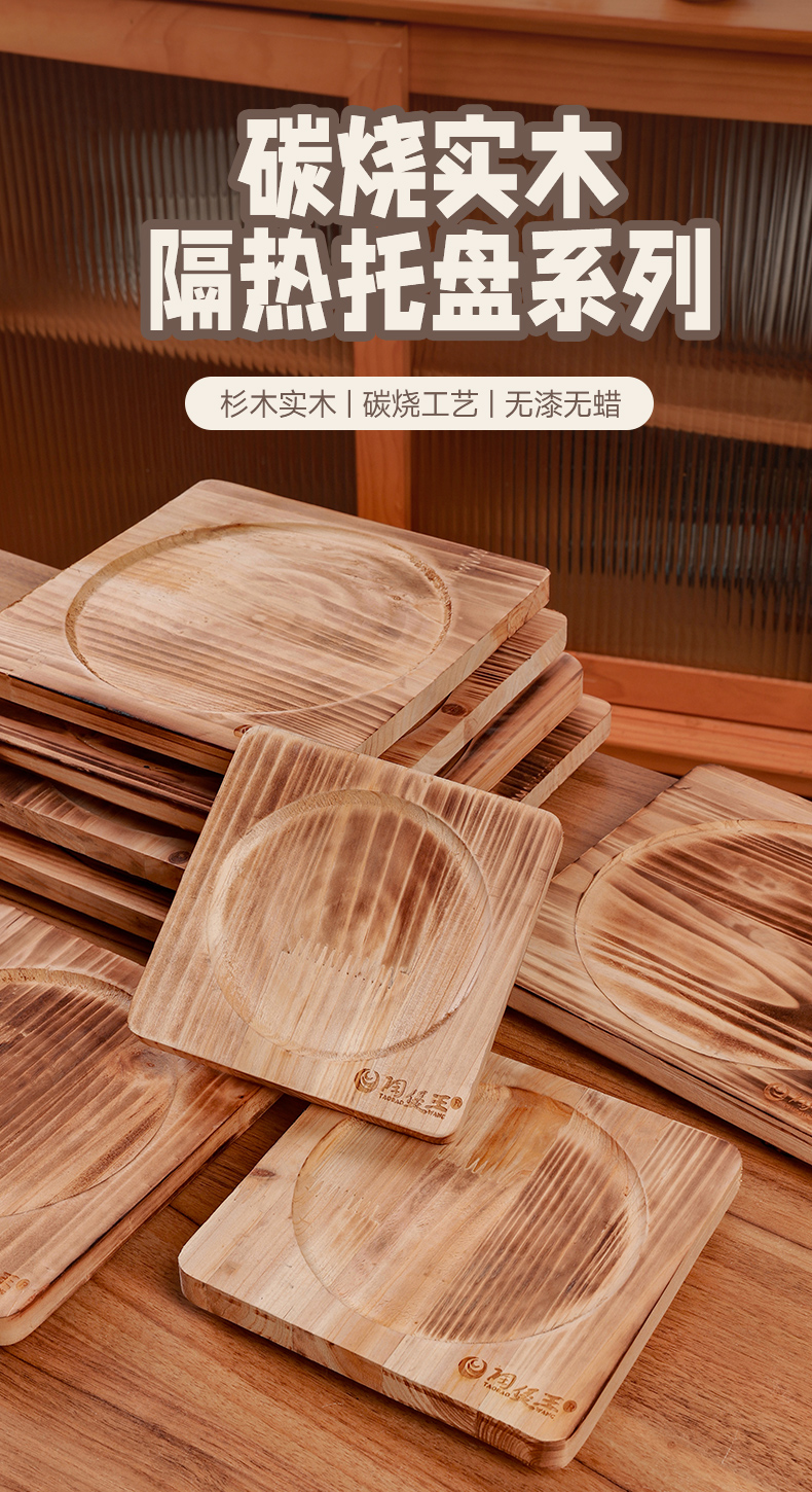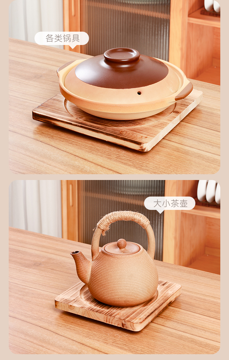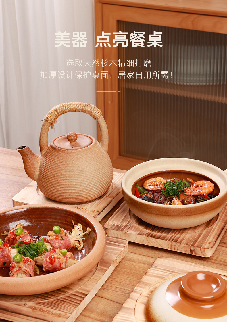 【陶煲王碳烧板】防烫碳烧板隔热垫中式实木餐桌垫木质耐高温防烫杉木砂锅垫