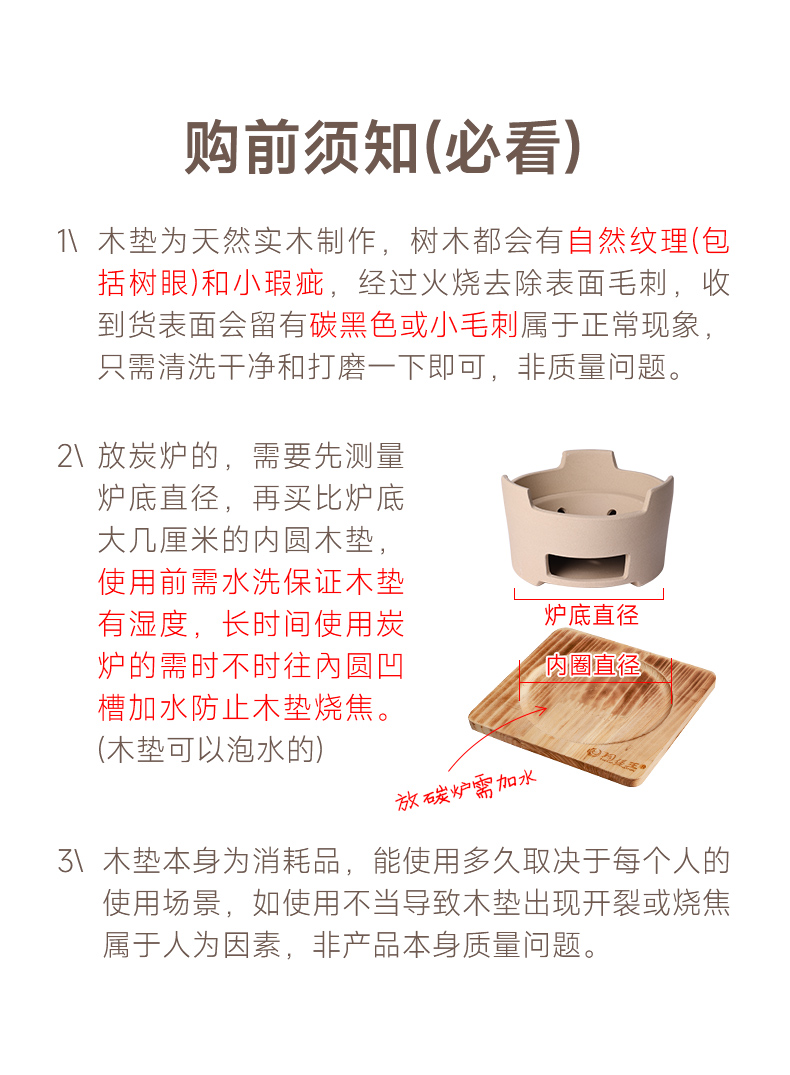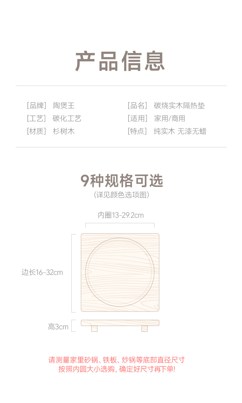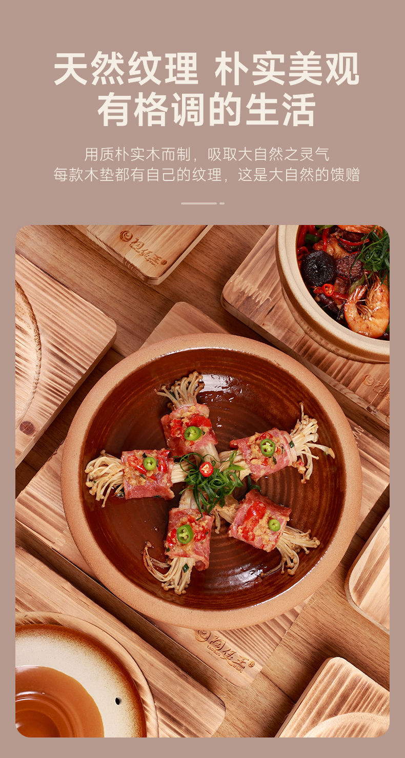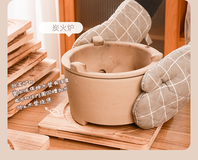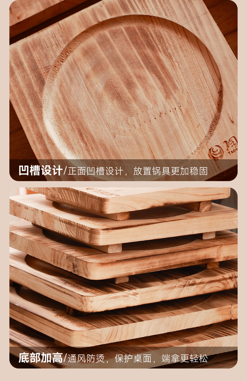【陶煲王碳烧板】防烫碳烧板隔热垫中式实木餐桌垫木质耐高温防烫杉木砂锅垫