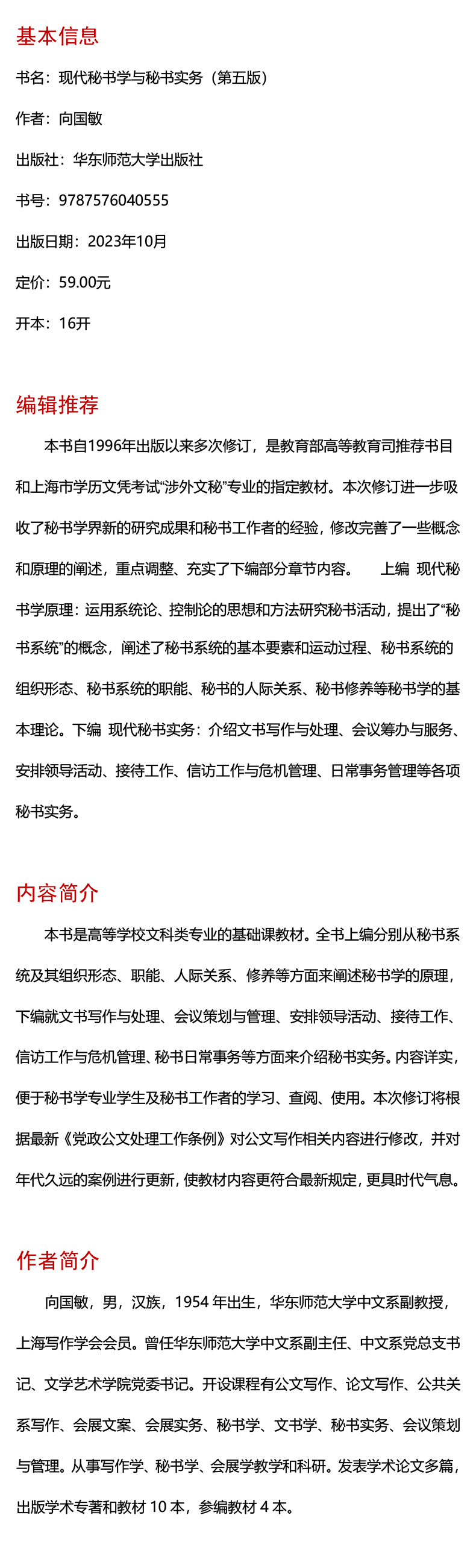 现代秘书学与秘书实务 第五版 高校文科精品教材 向国敏