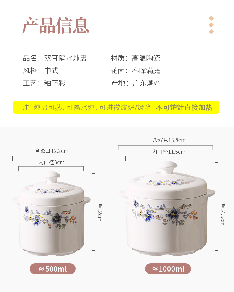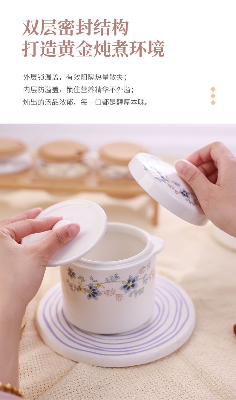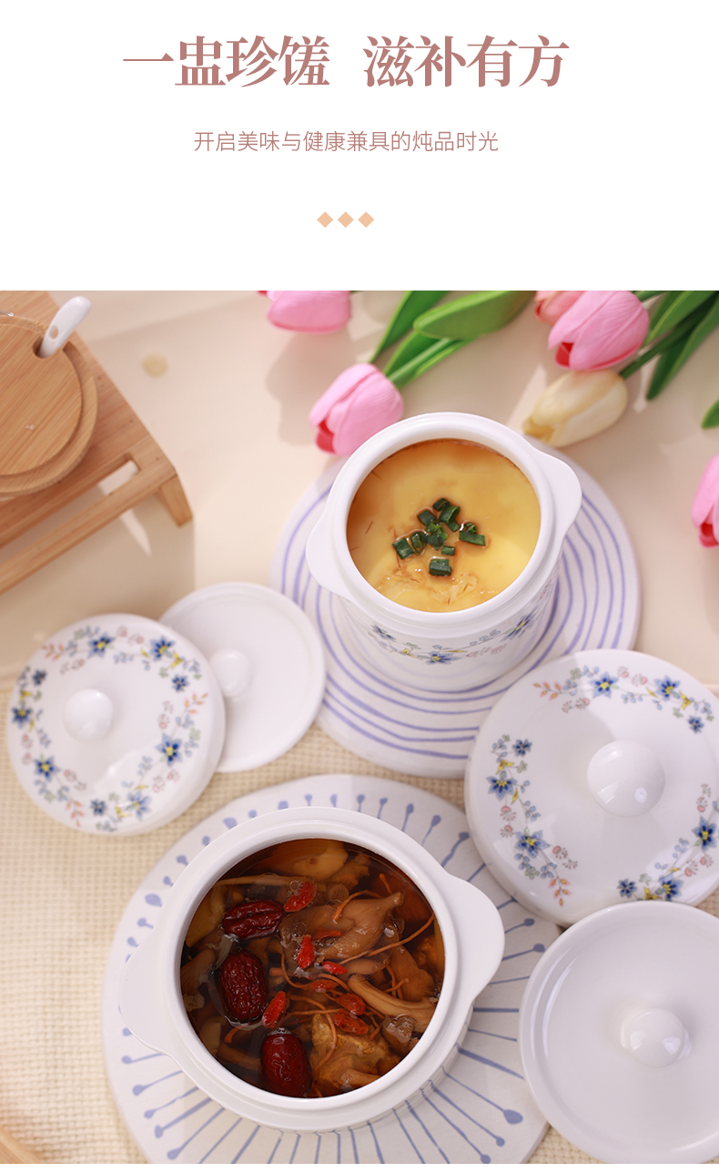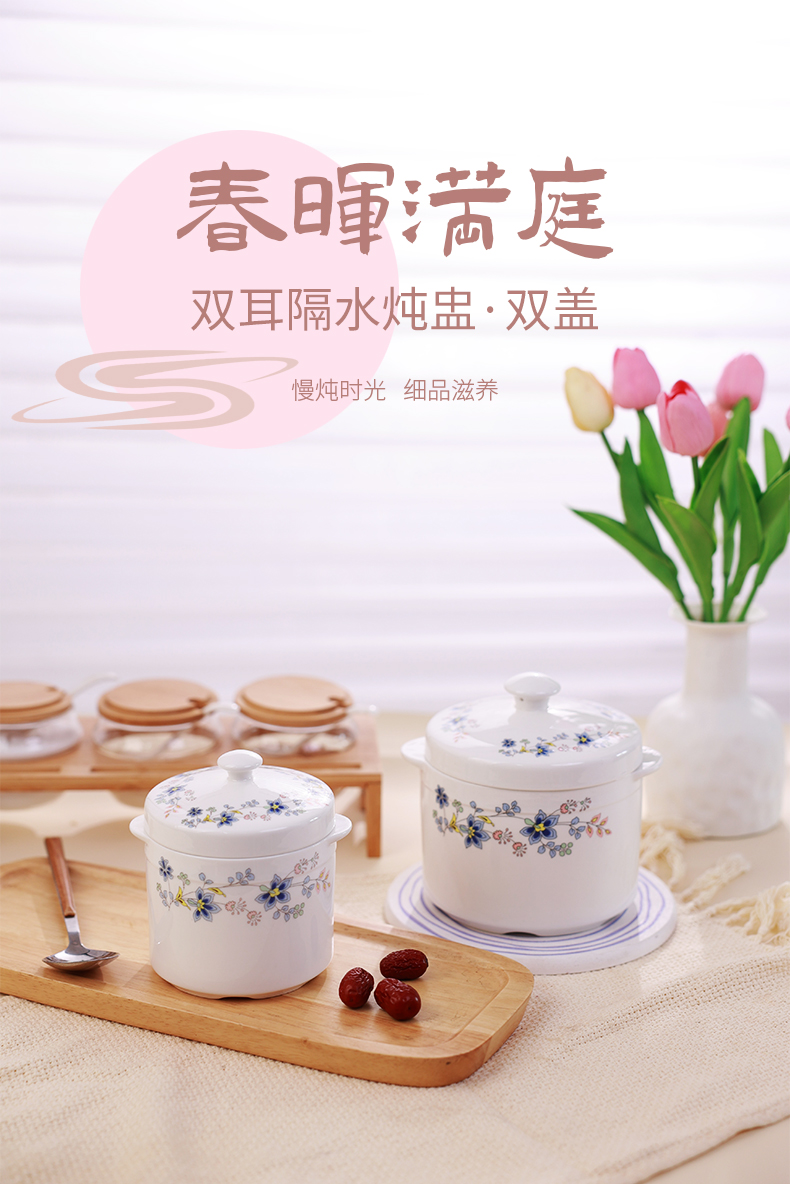 【春晖满庭双盖炖盅】陶瓷隔水炖盅带盖炖盅家用双盖炖罐蒸鸡蛋羹燕窝