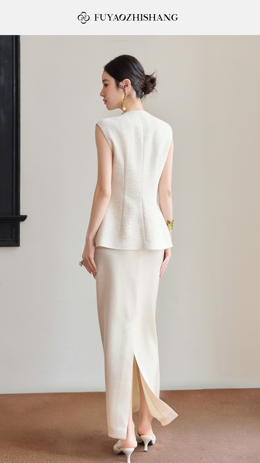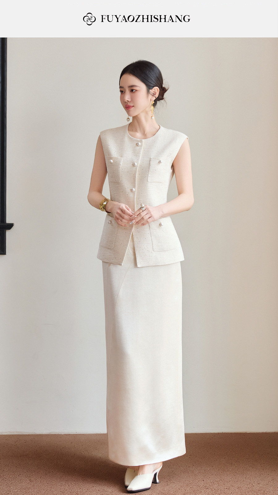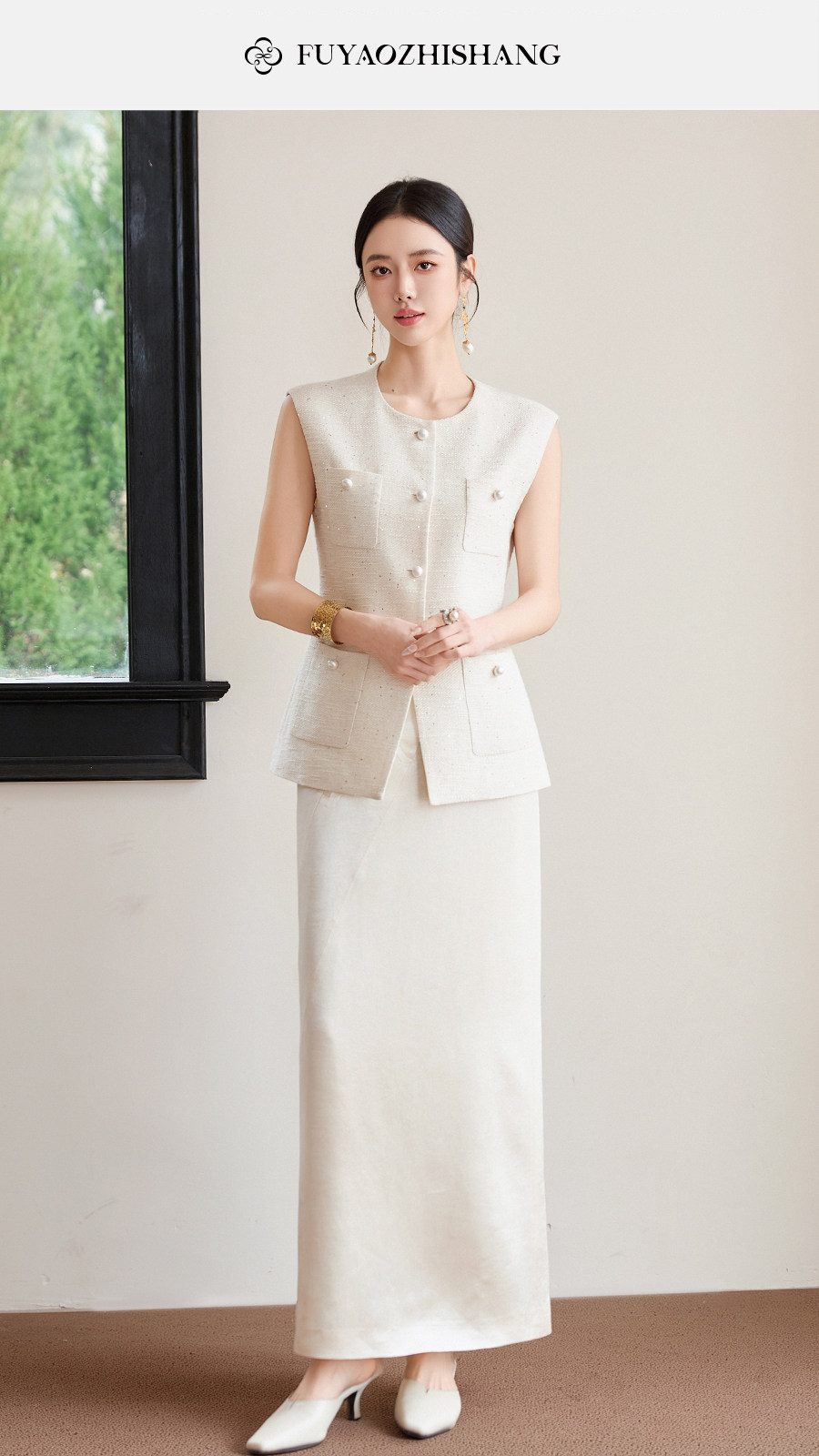 FUYAO扶摇直上 简约松弛马甲两件套轻奢小香风半身裙夏季优雅套装