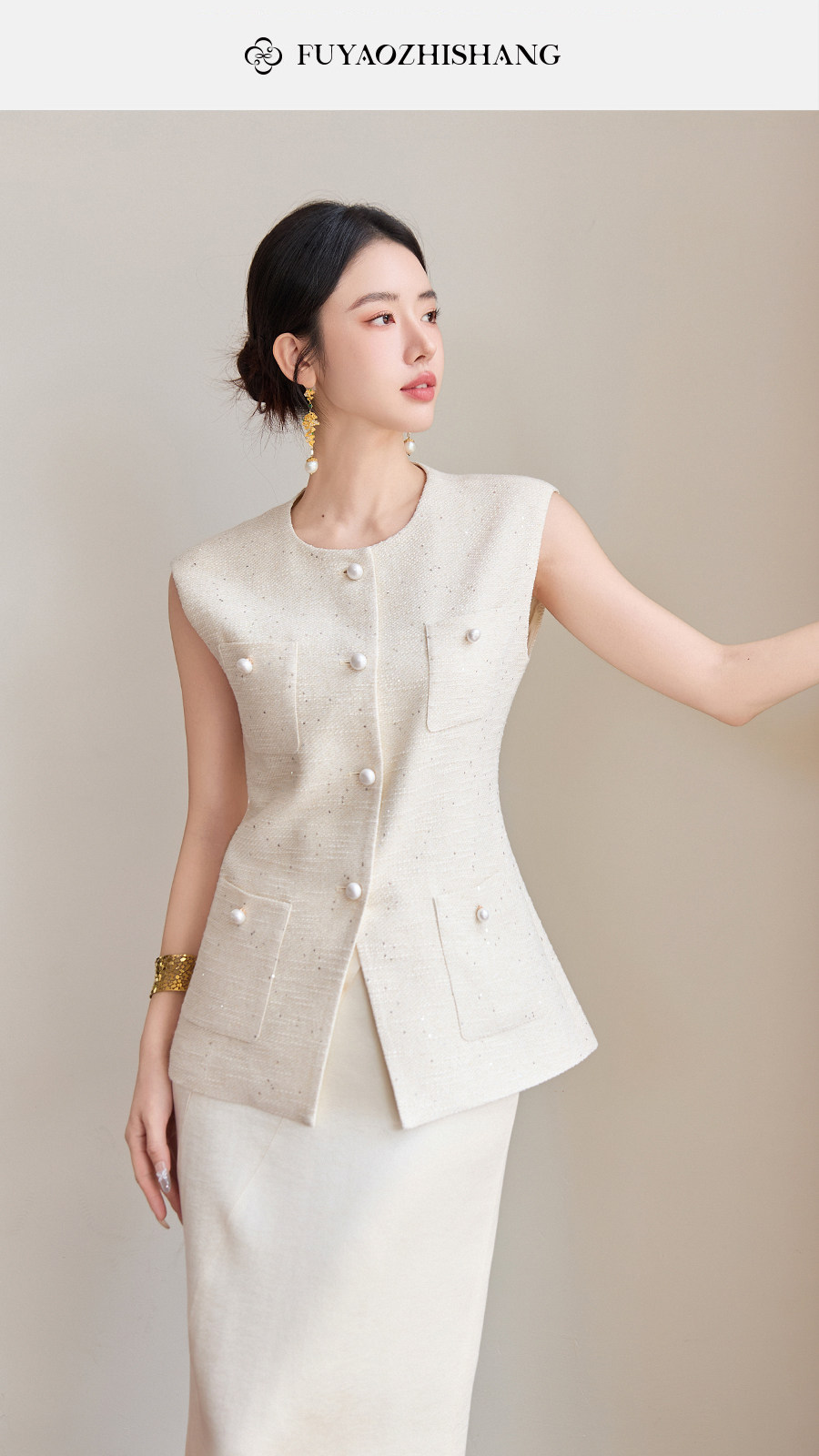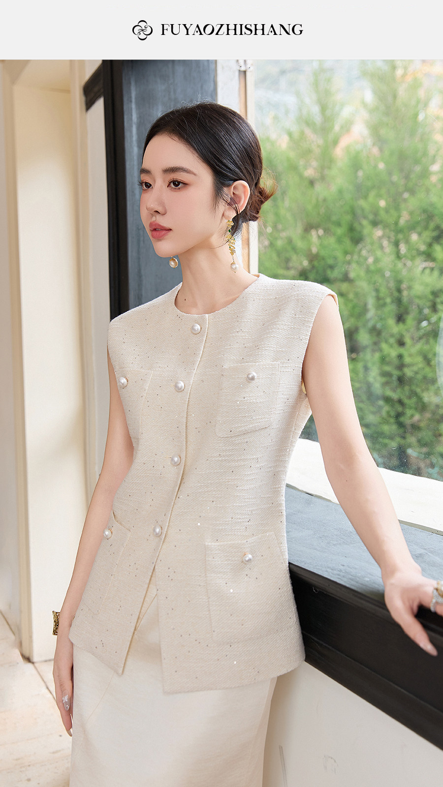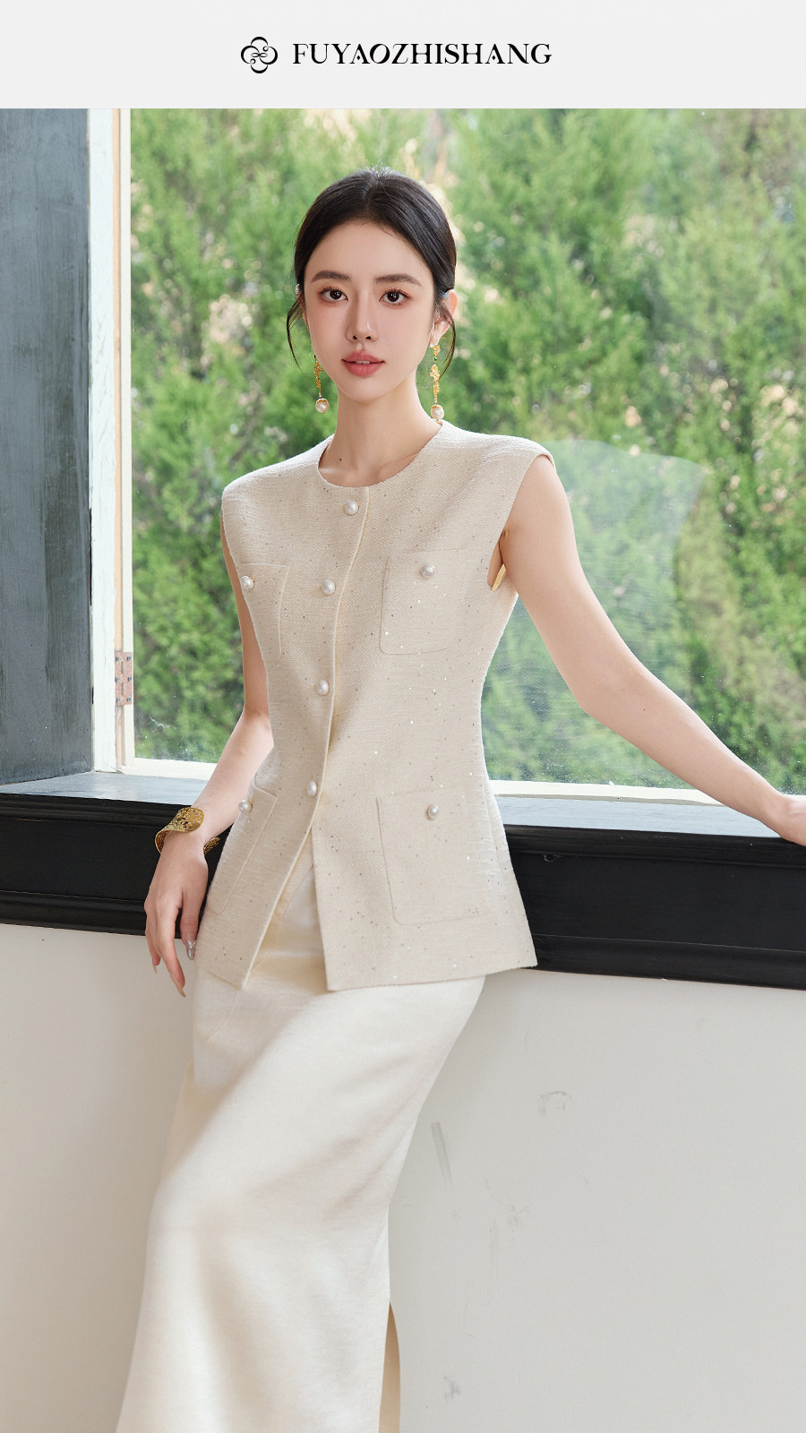 FUYAO扶摇直上 简约松弛马甲两件套轻奢小香风半身裙夏季优雅套装