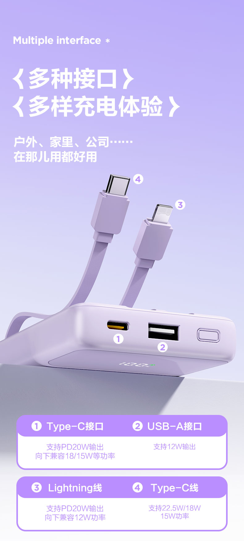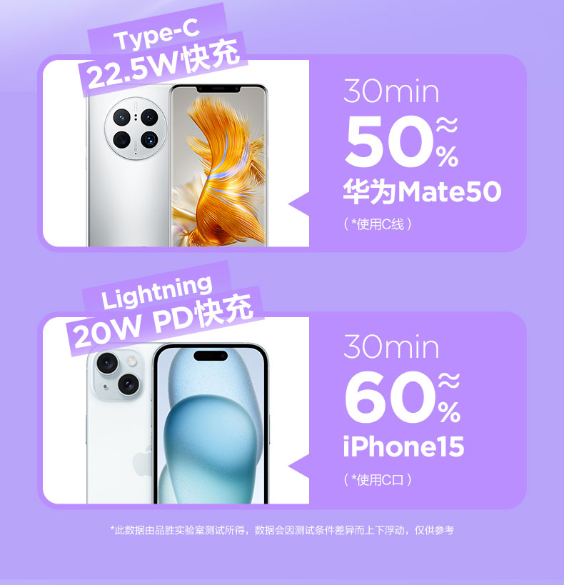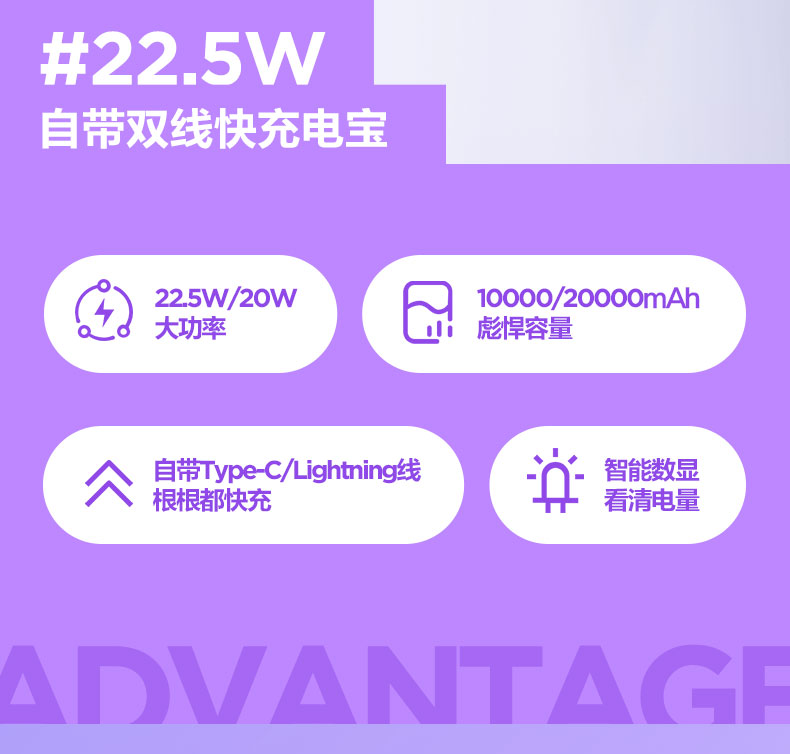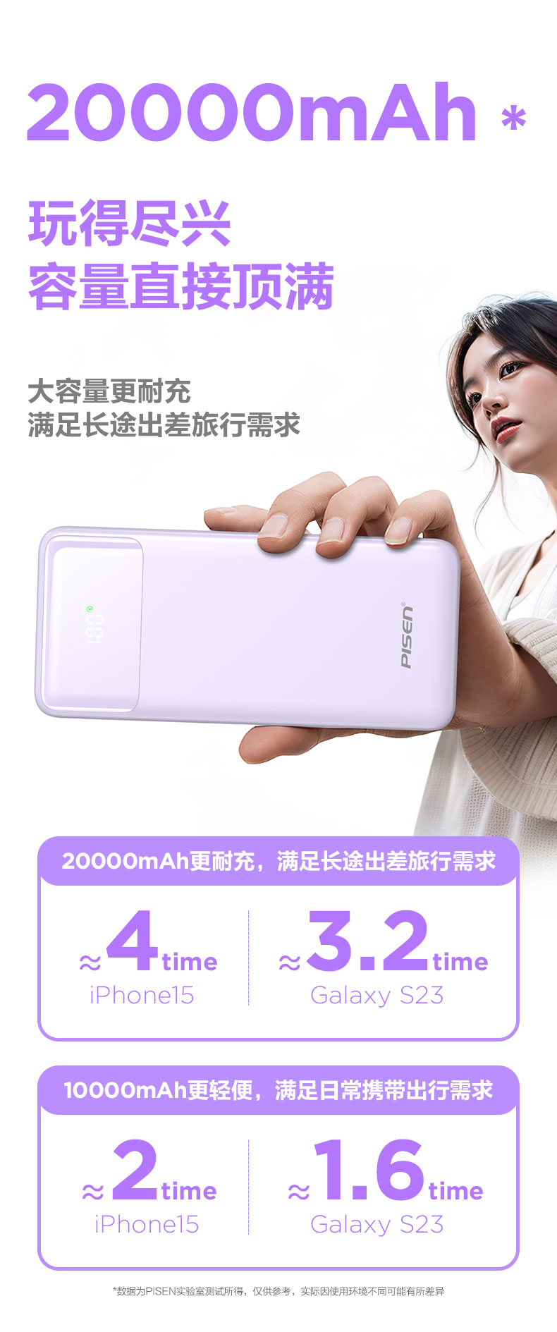 品胜 数显双线快充电库22.5W快充电宝 移动电源 10000/20000毫安支持苹果小米华为 充电宝