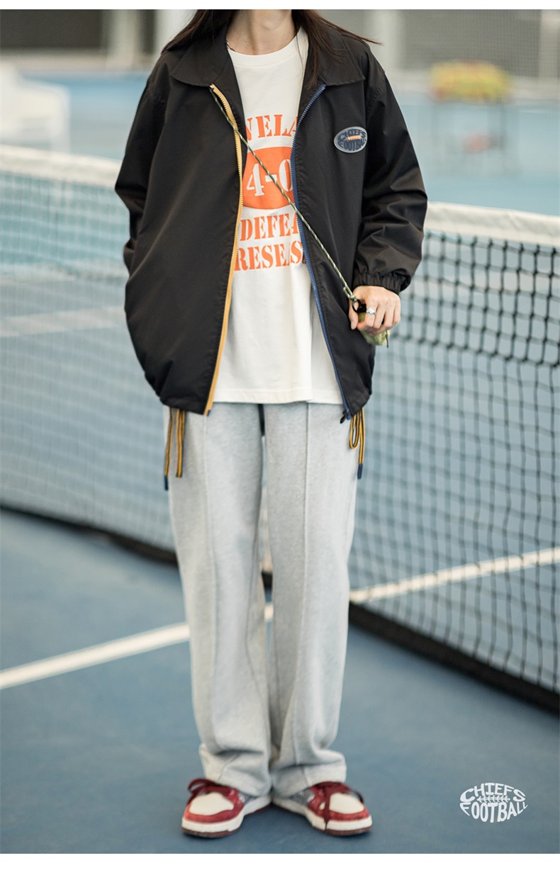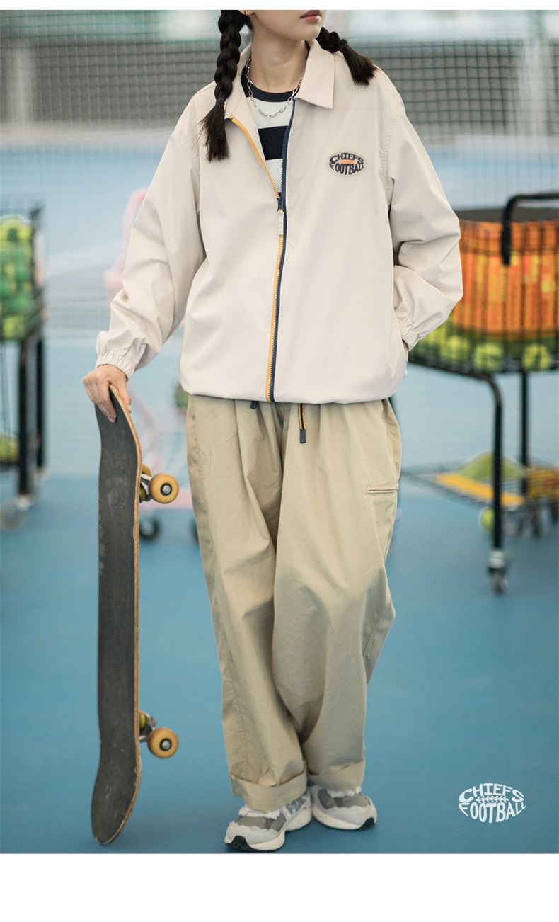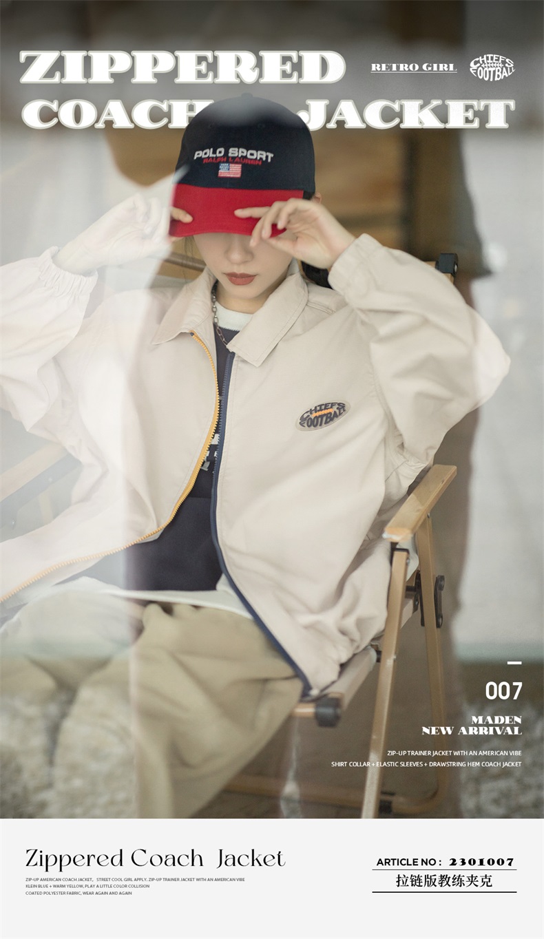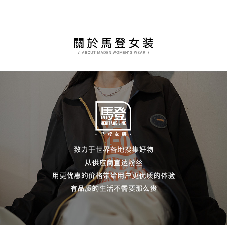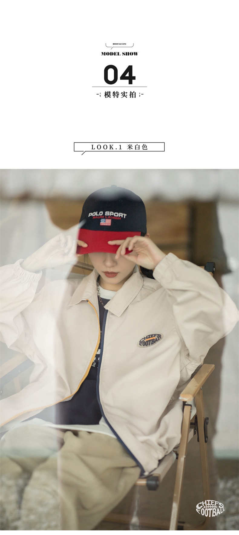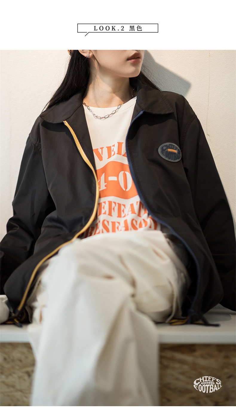马登美式复古教练夹克外套撞色拉链棒球服翻领街头上衣女秋女