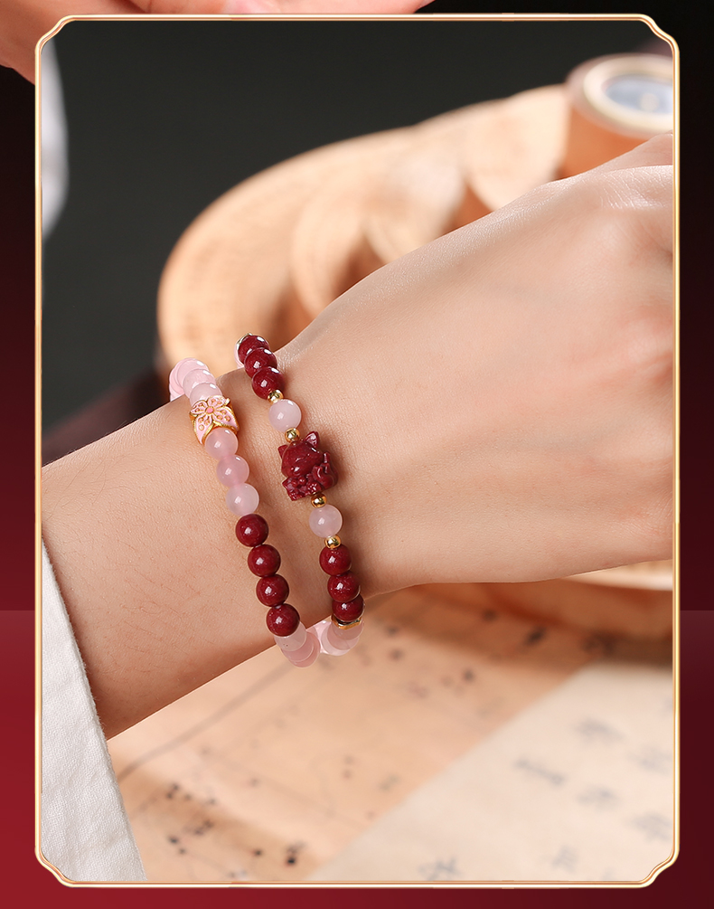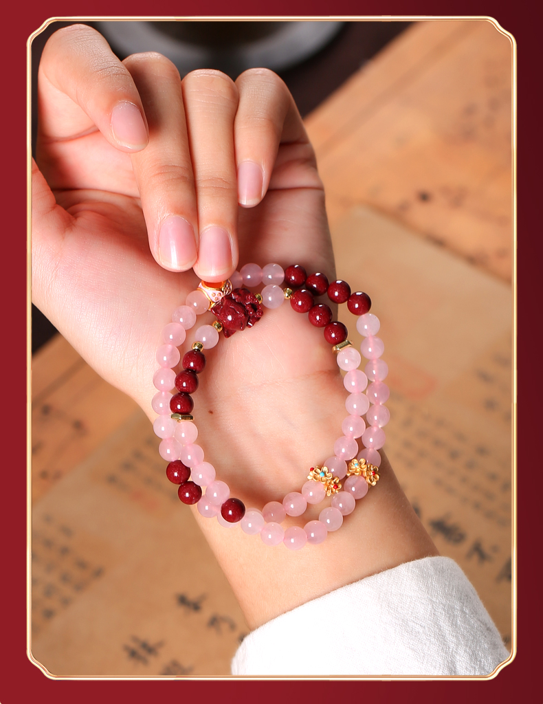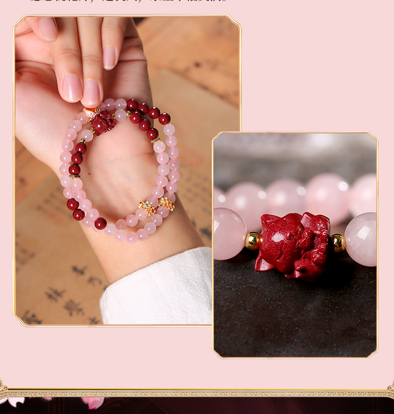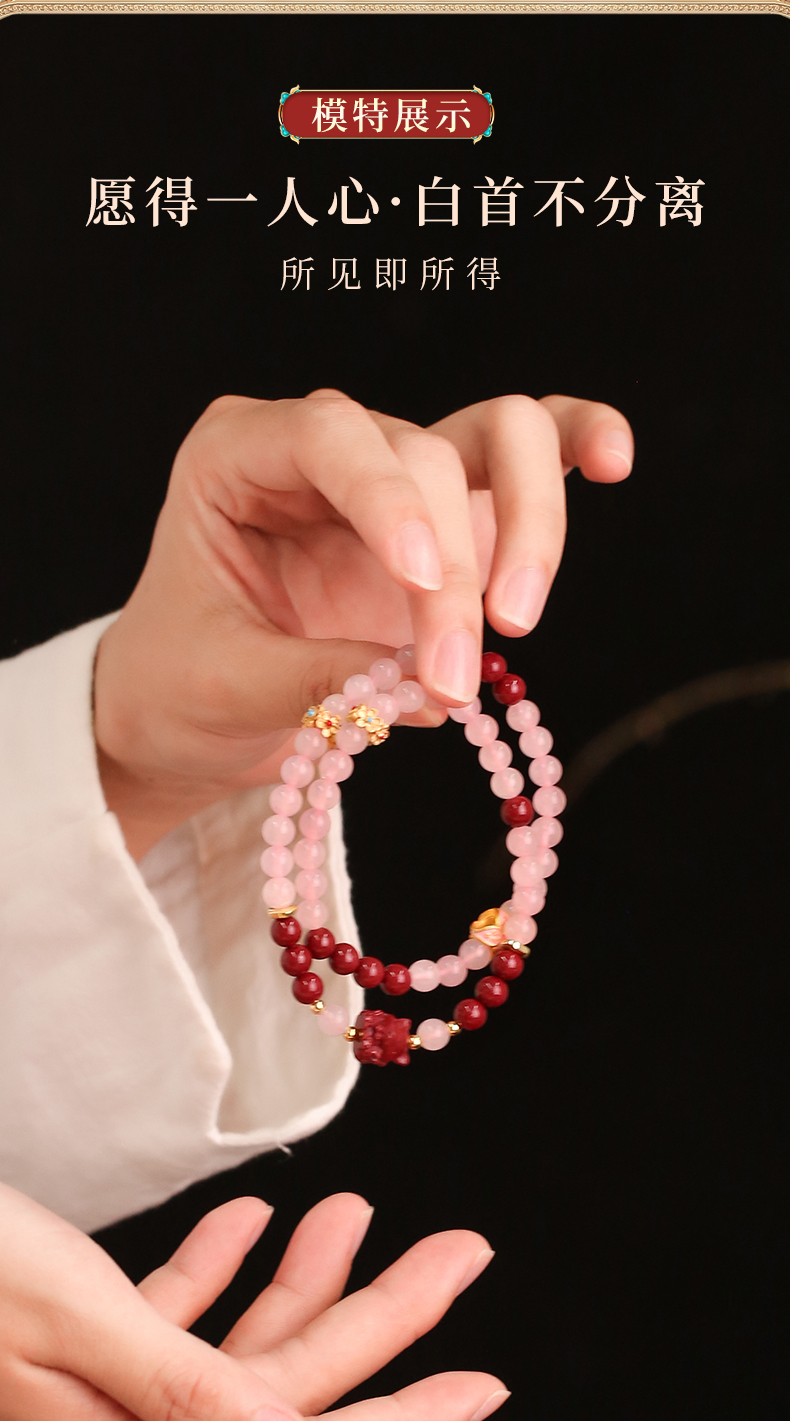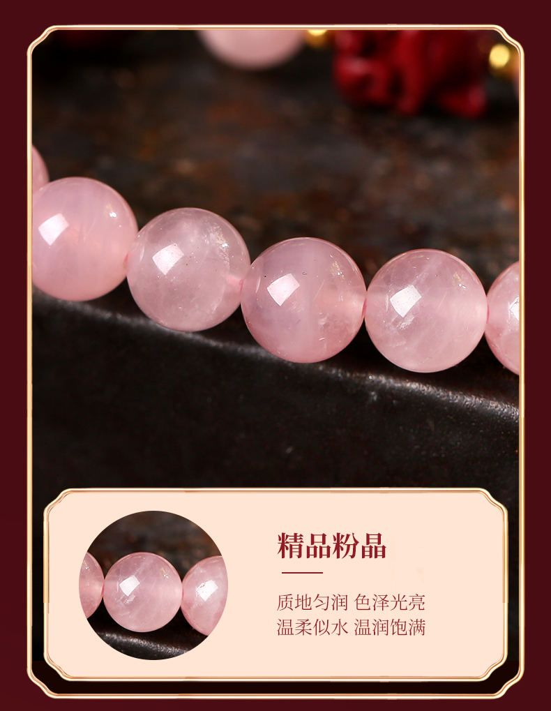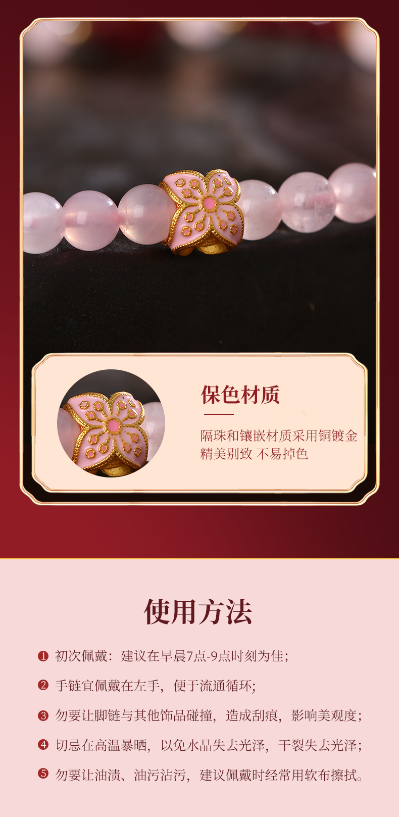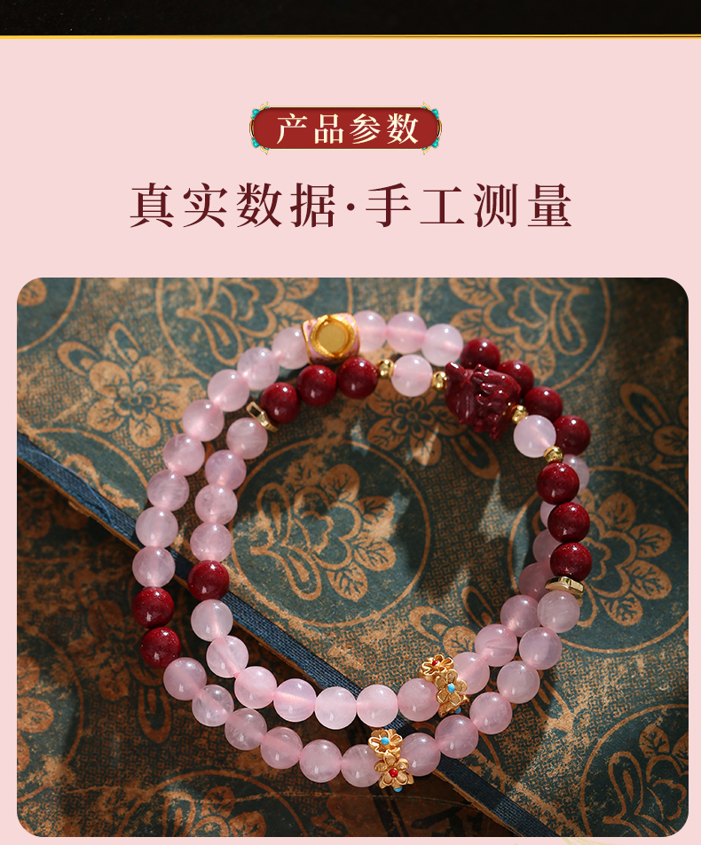灵机生活馆缘起粉水晶手链粉晶手串女款小众玉石手链原创设计生日礼物