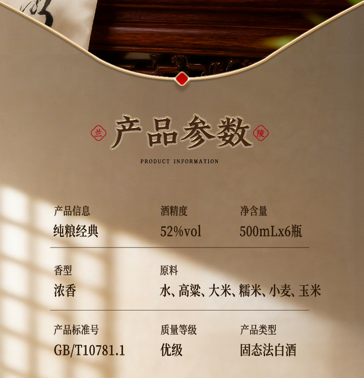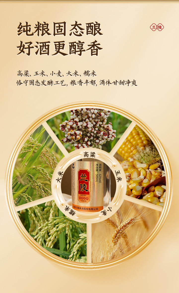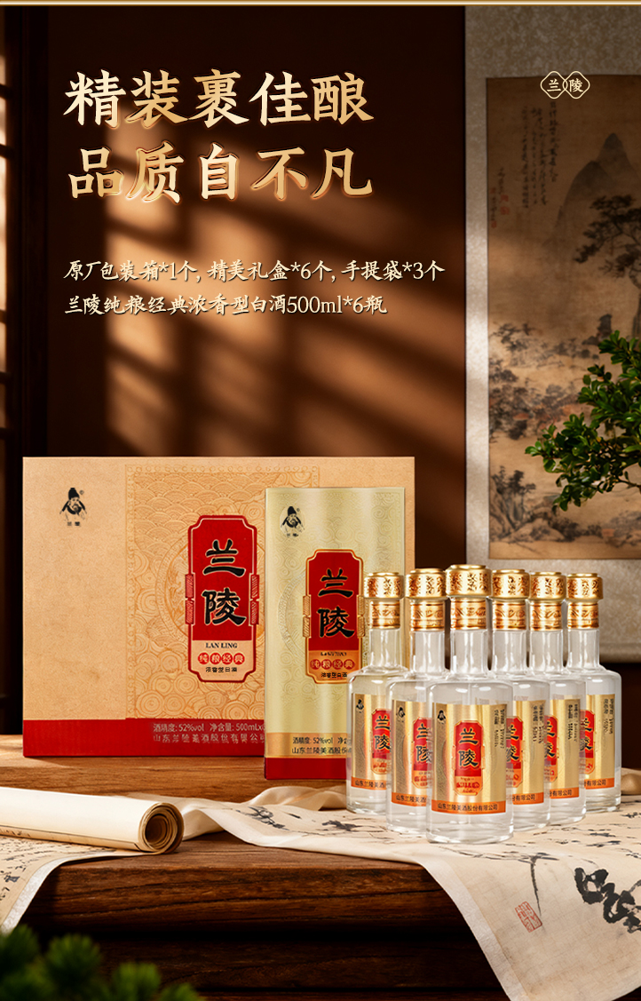兰陵 纯粮经典 52度优级浓香型白酒500ml*6瓶整箱 纯粮酿造【下单到手两箱】