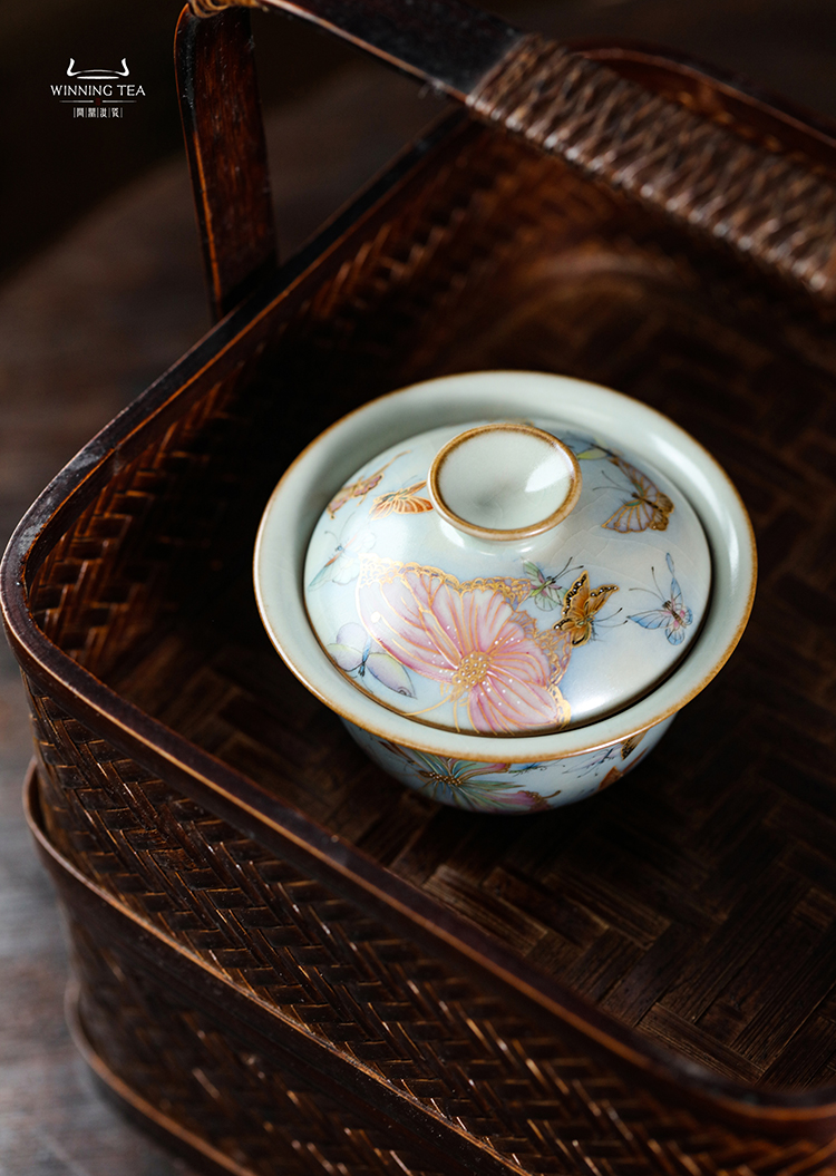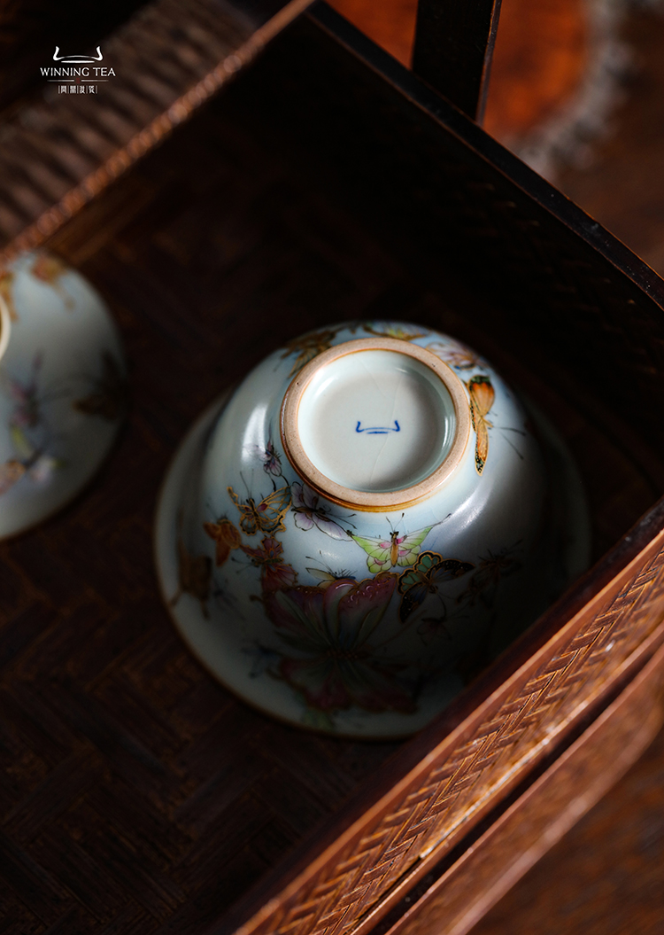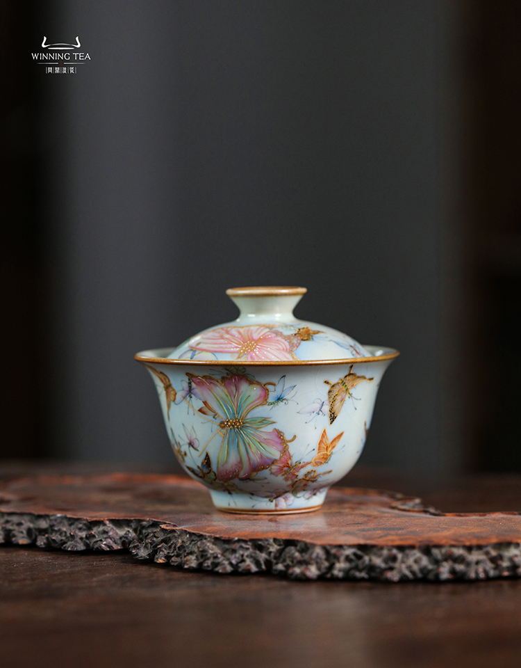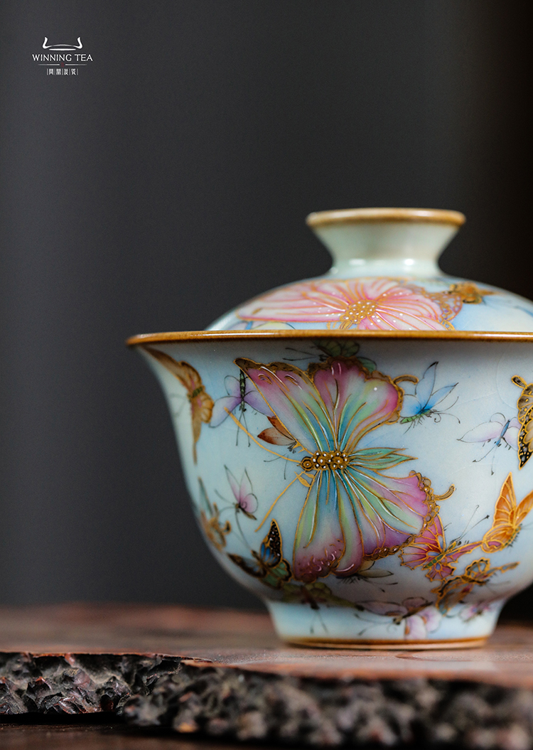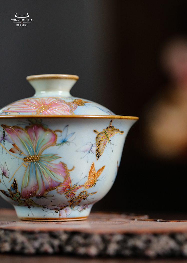 问鼎鼎峰系列天青酌泉二才盖碗(梦蝶飞舞)