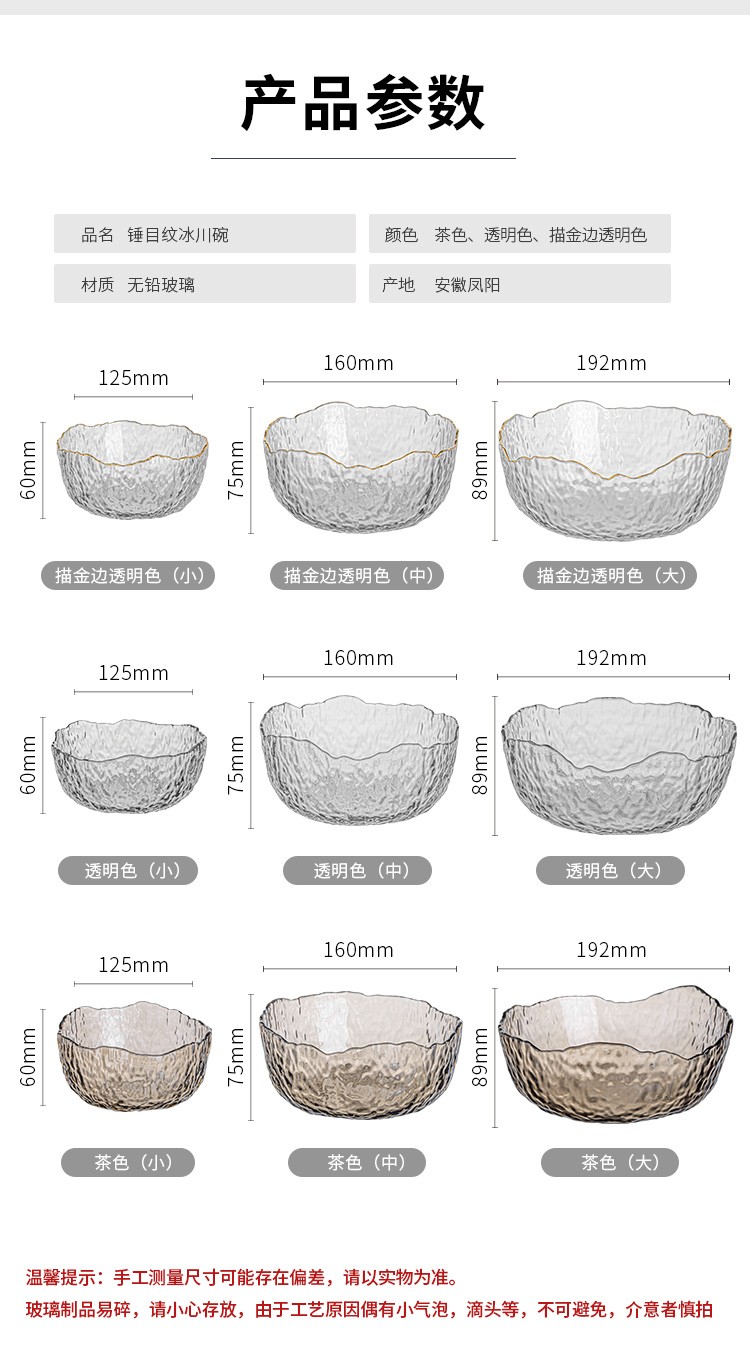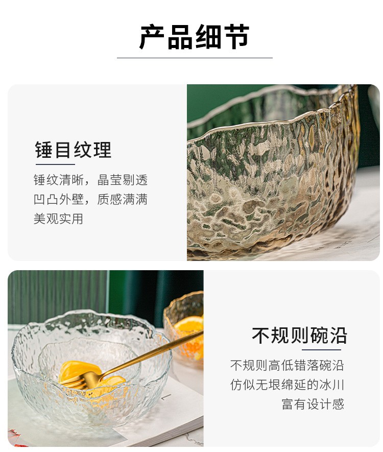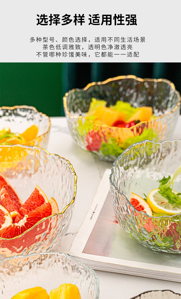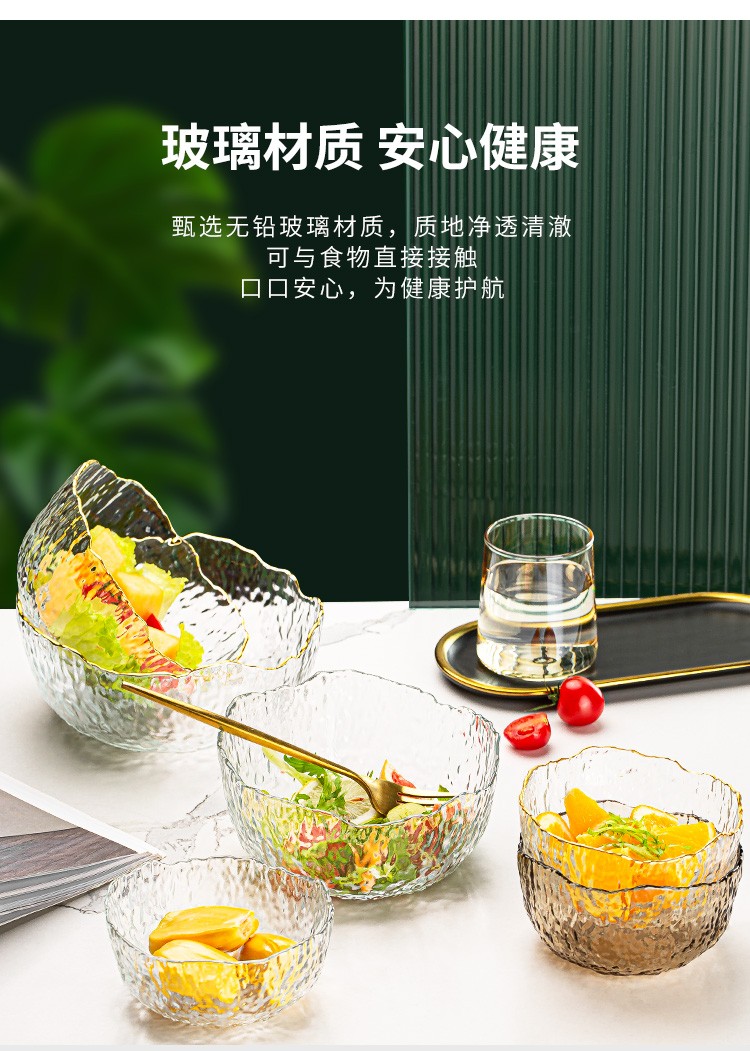 日式ins风透明玻璃碗家用网红餐具套装水果沙拉碗磨砂泡面碗 透明330ML(无金边)