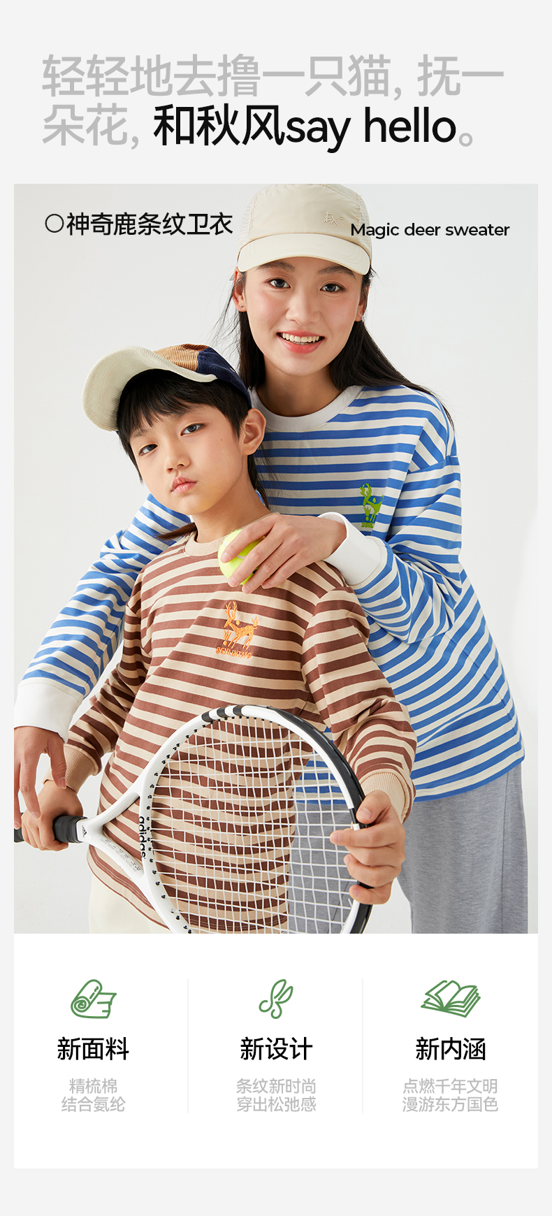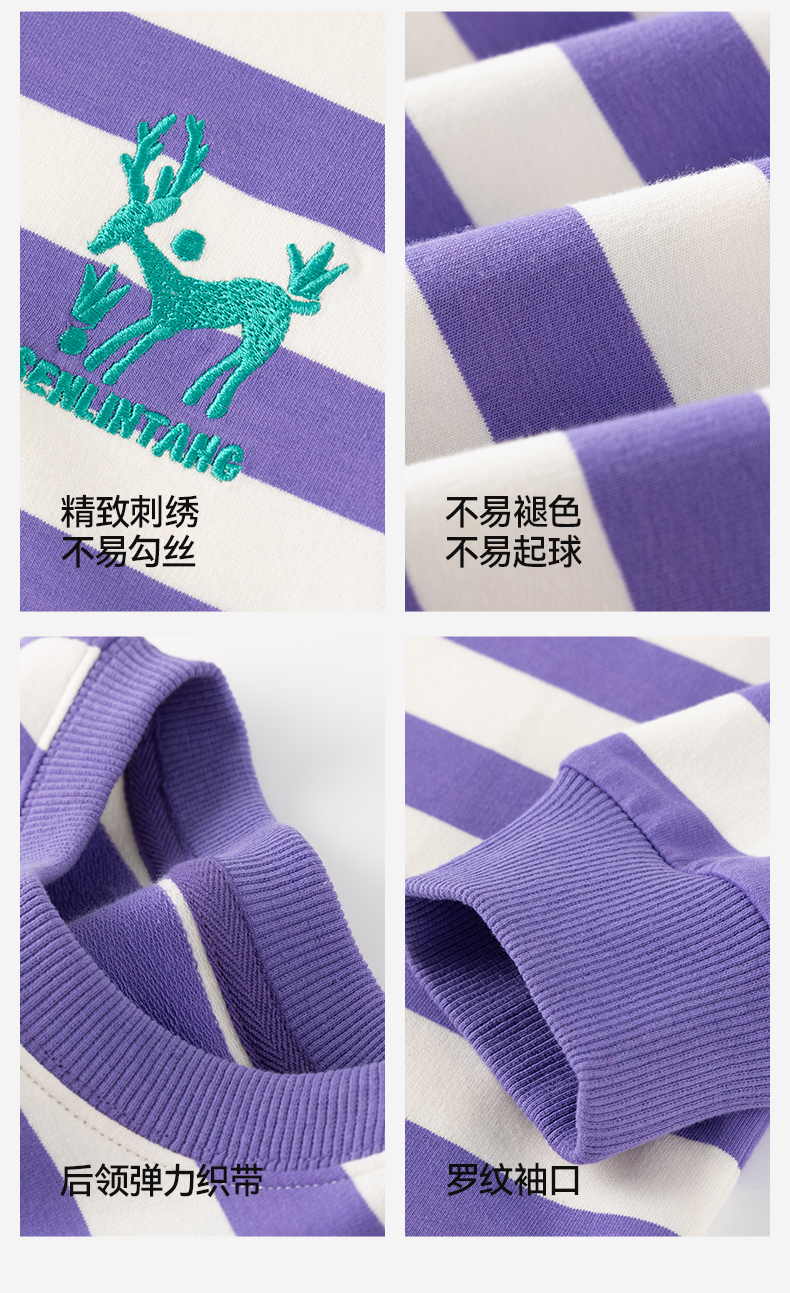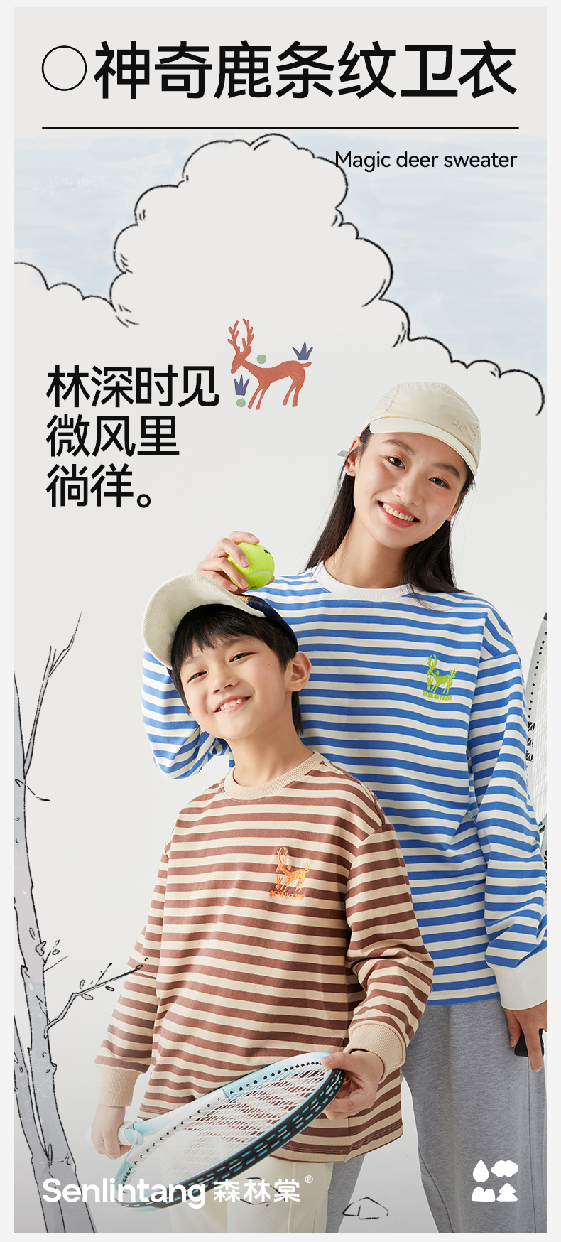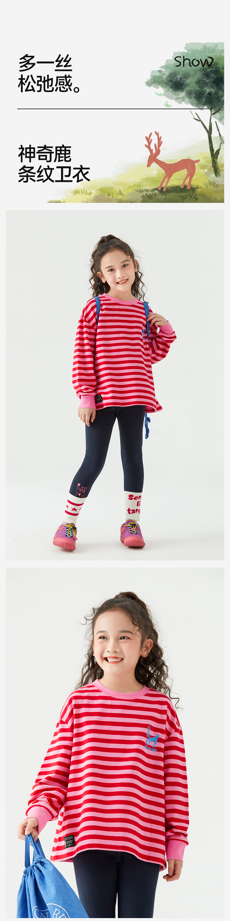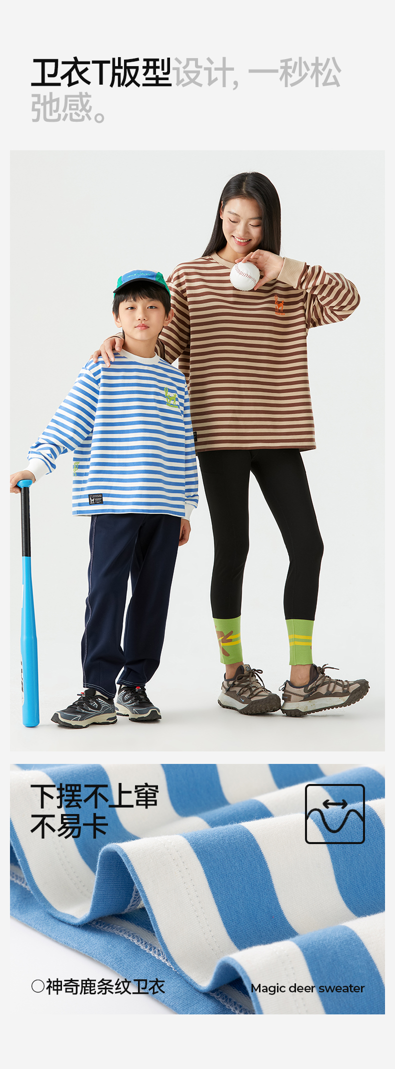 【神奇鹿条纹卫衣】森林棠24秋季新款儿童棉棉拼色条纹亲子宽松卫衣60341052
