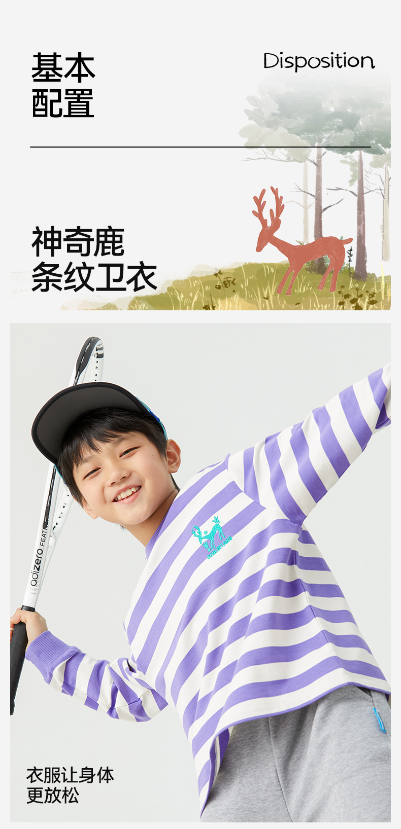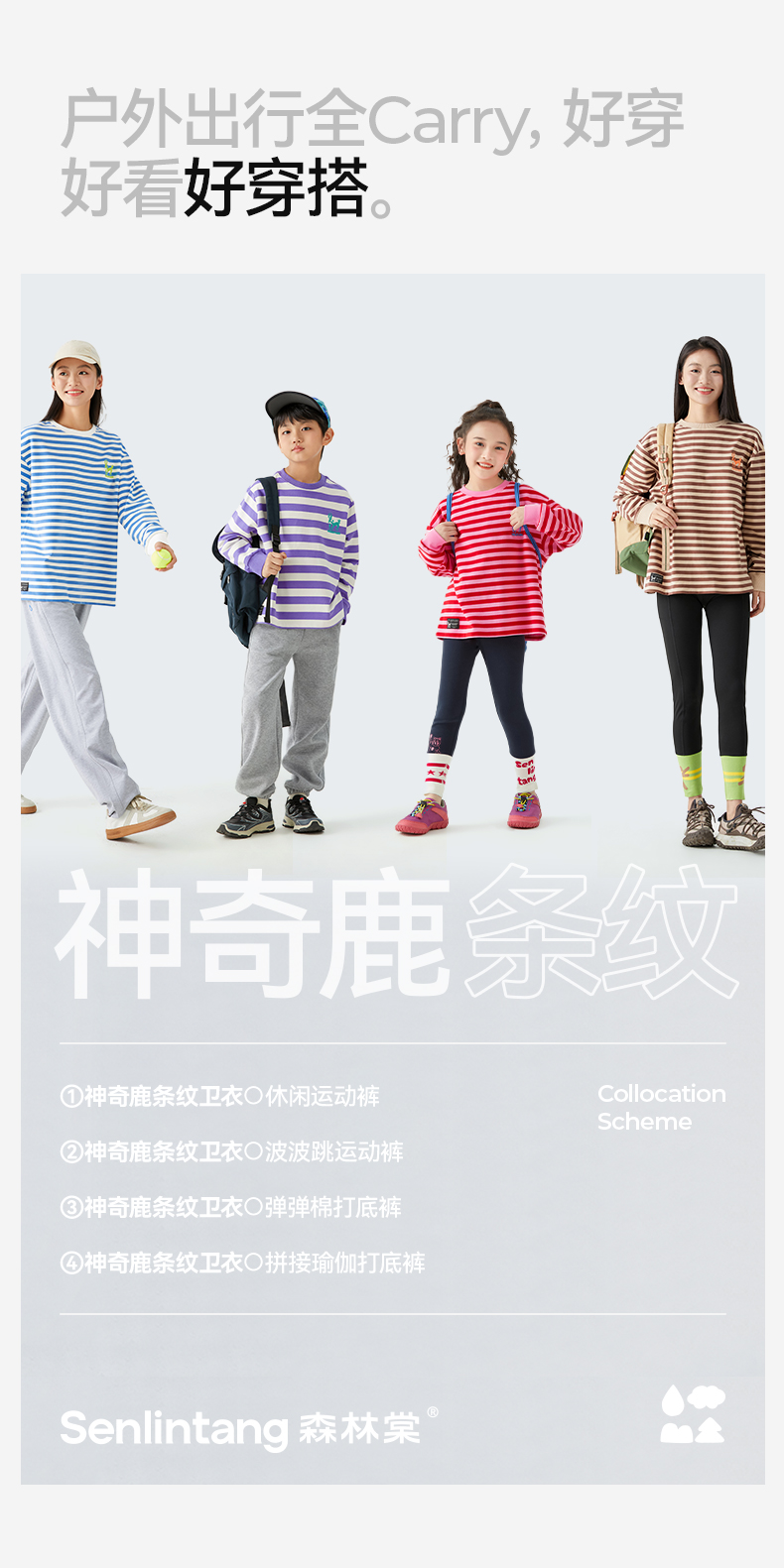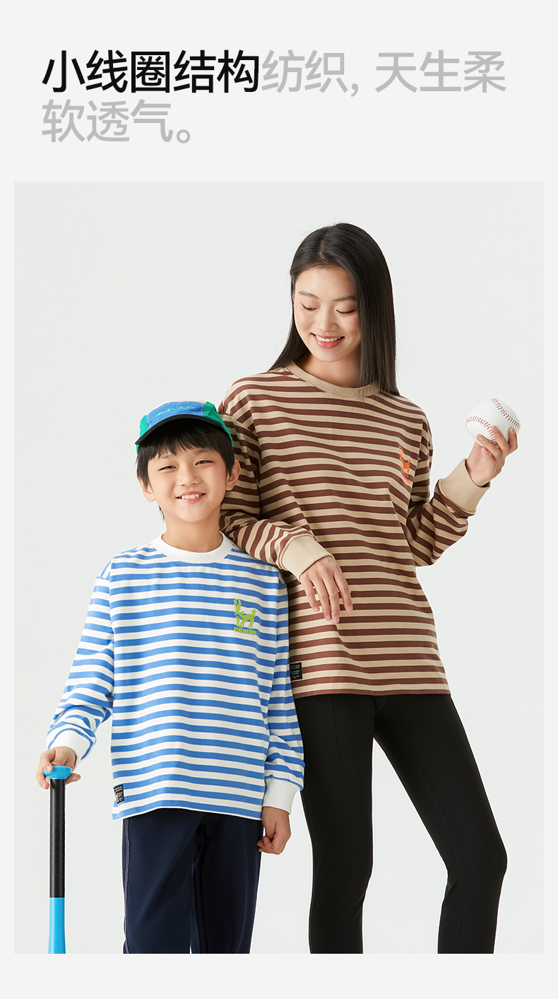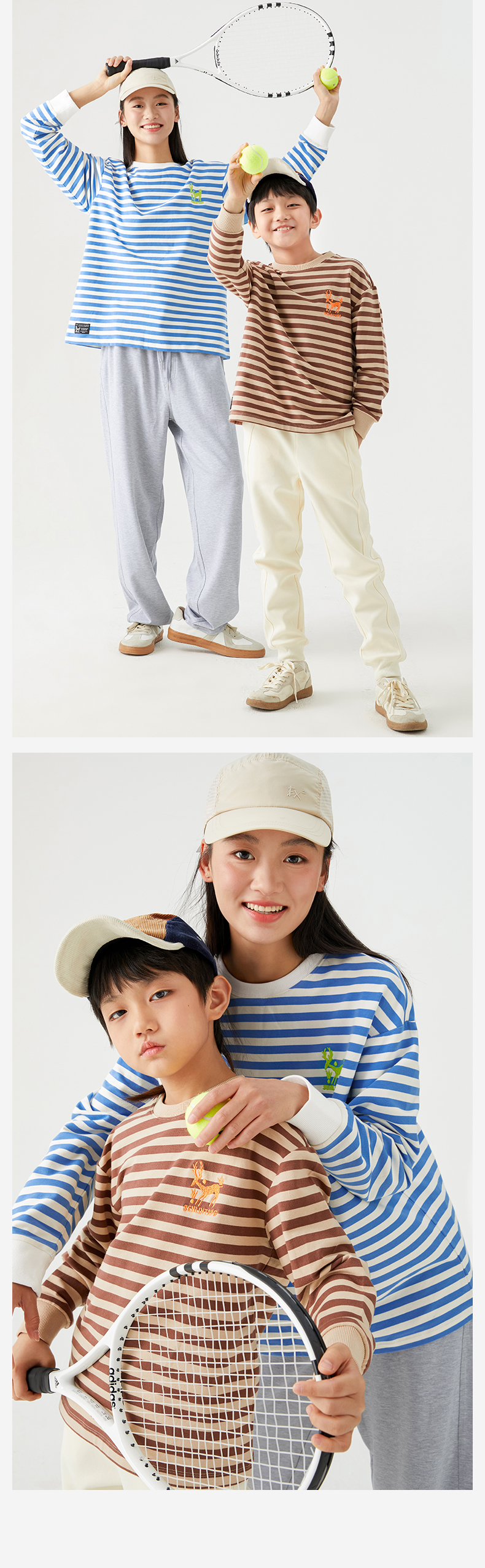 【神奇鹿条纹卫衣】森林棠24秋季新款儿童棉棉拼色条纹亲子宽松卫衣60341052