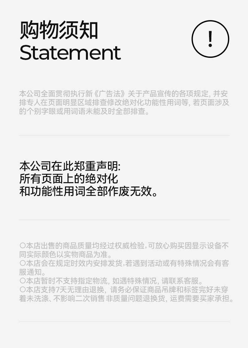 四、退换货及售后政策:非质量问题不影响二次销售的商品支持七天无理由退换货,买家承担运费自行寄回;收到商品有任何质量问题请联系我们处理售后