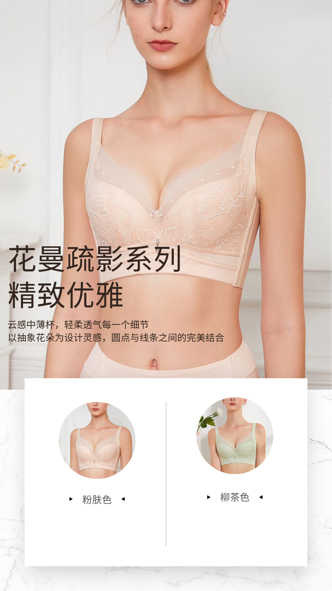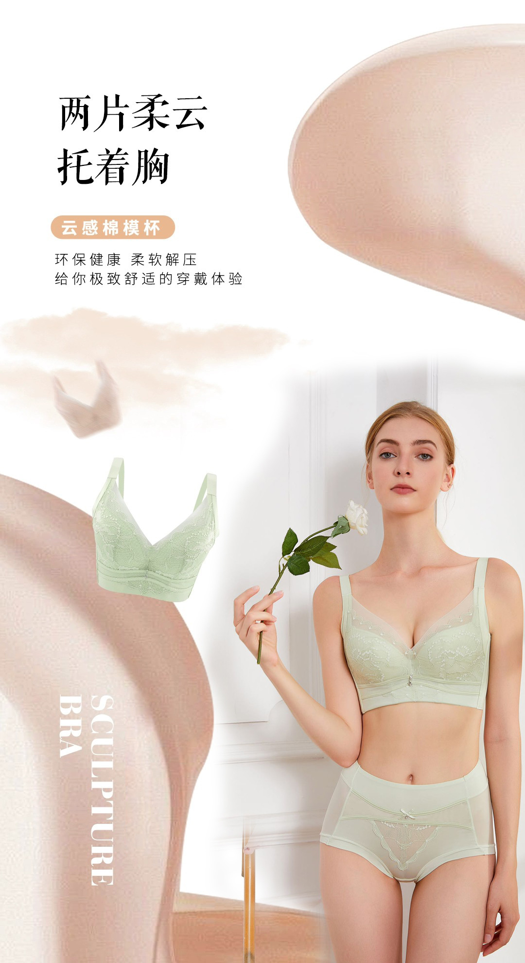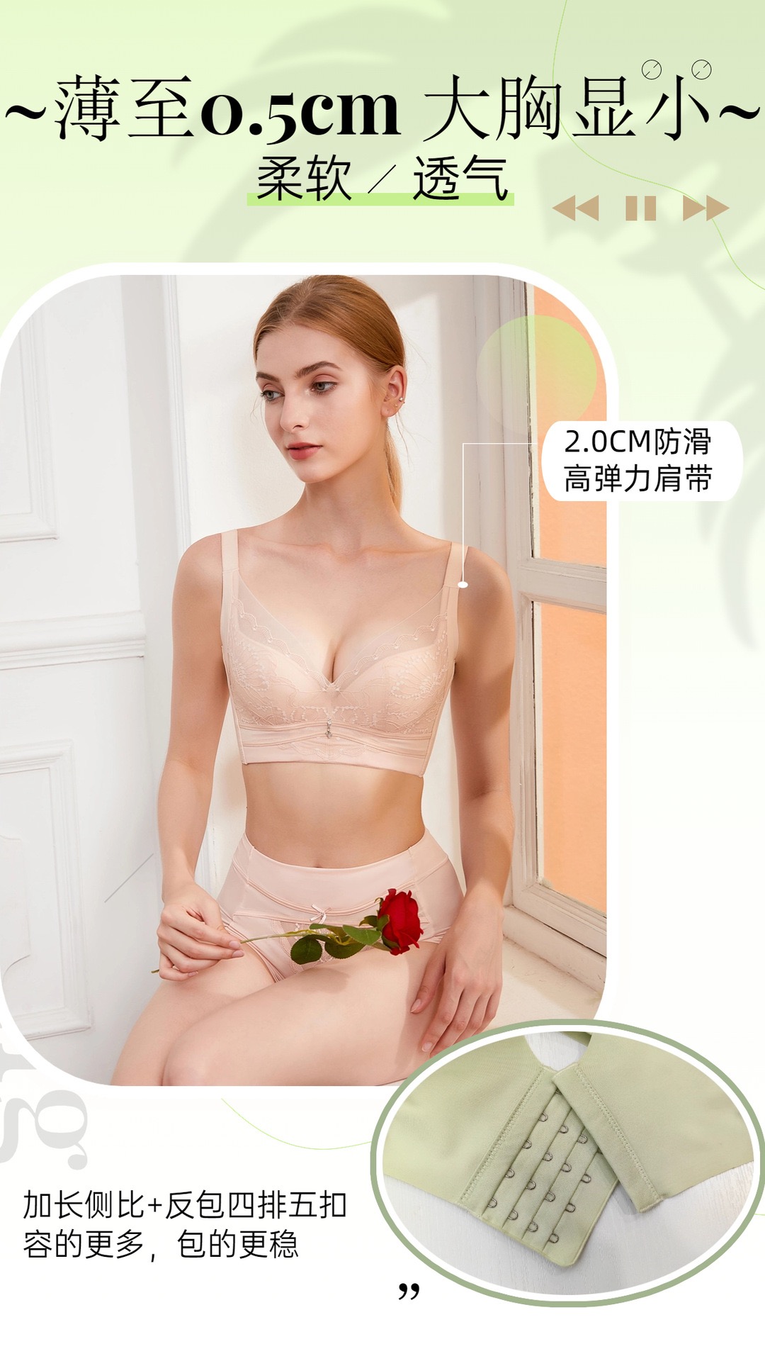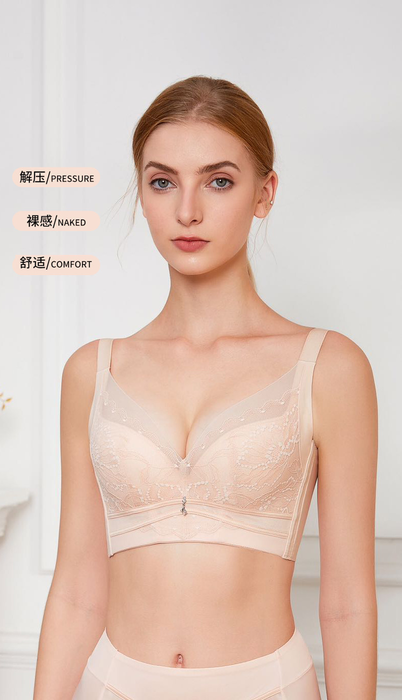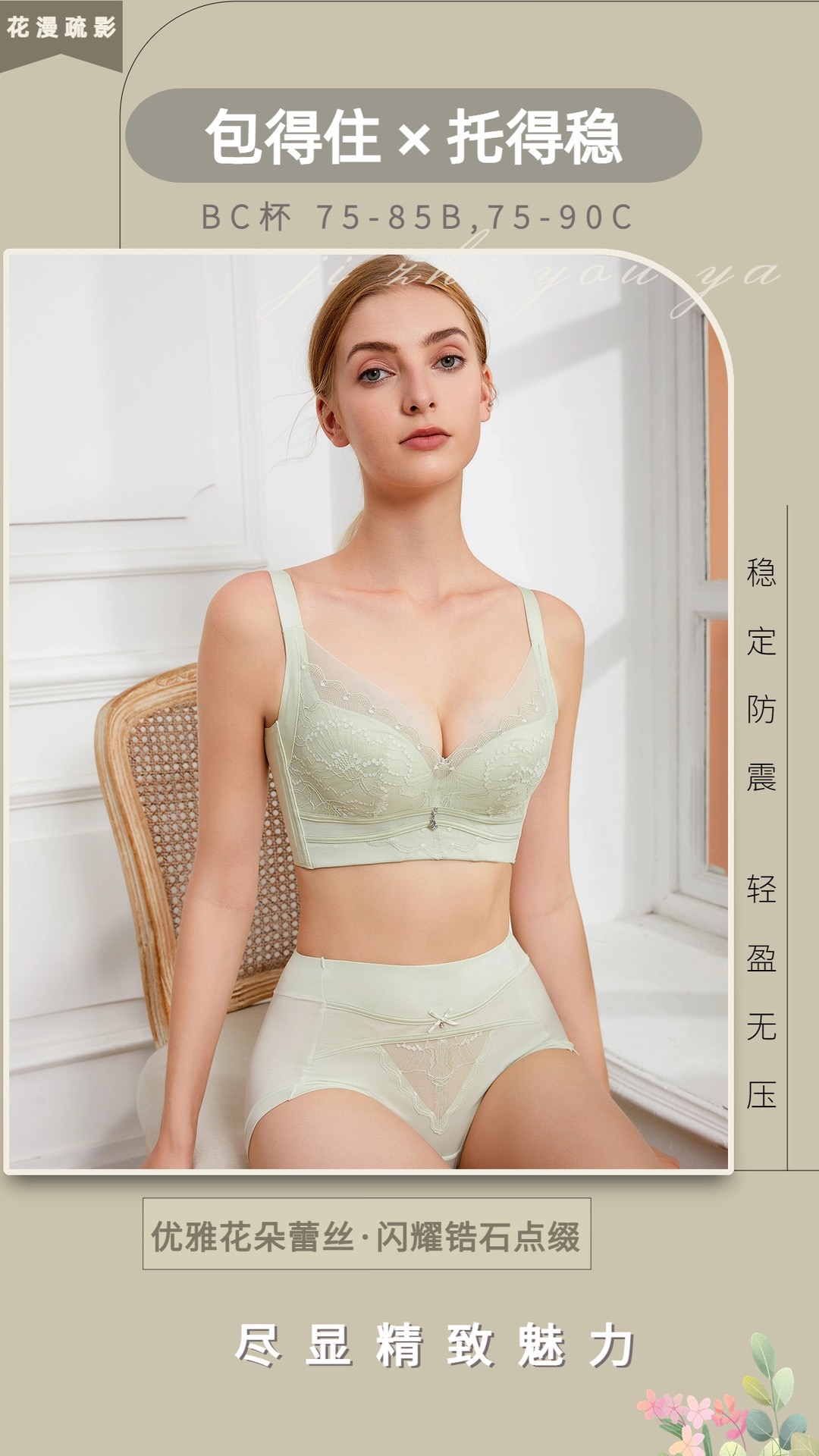 迪兰多新品花漫疏影系列 云感棉定型中杯(0.5CM)高侧收副乳聚拢上托调整型健康内衣 2118419