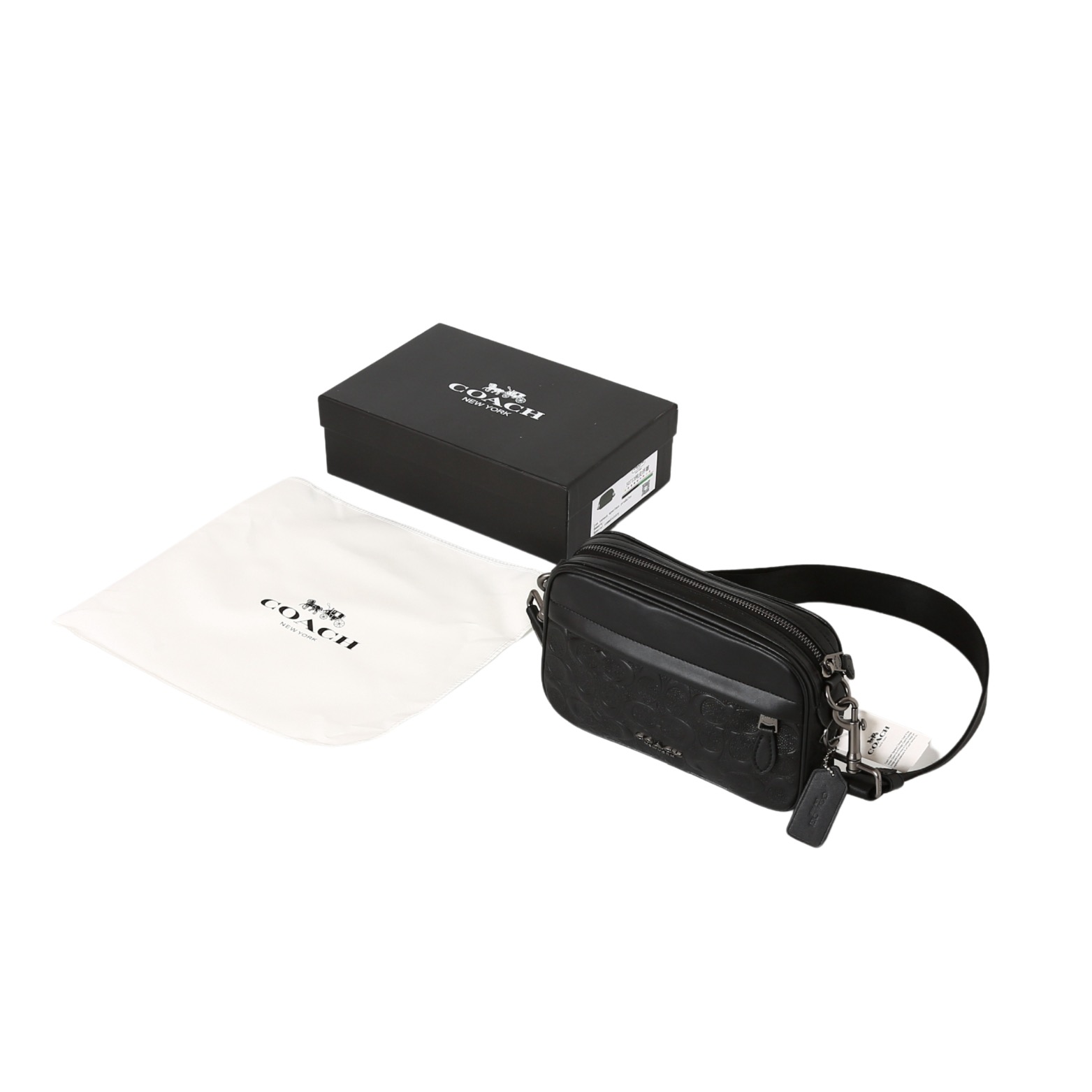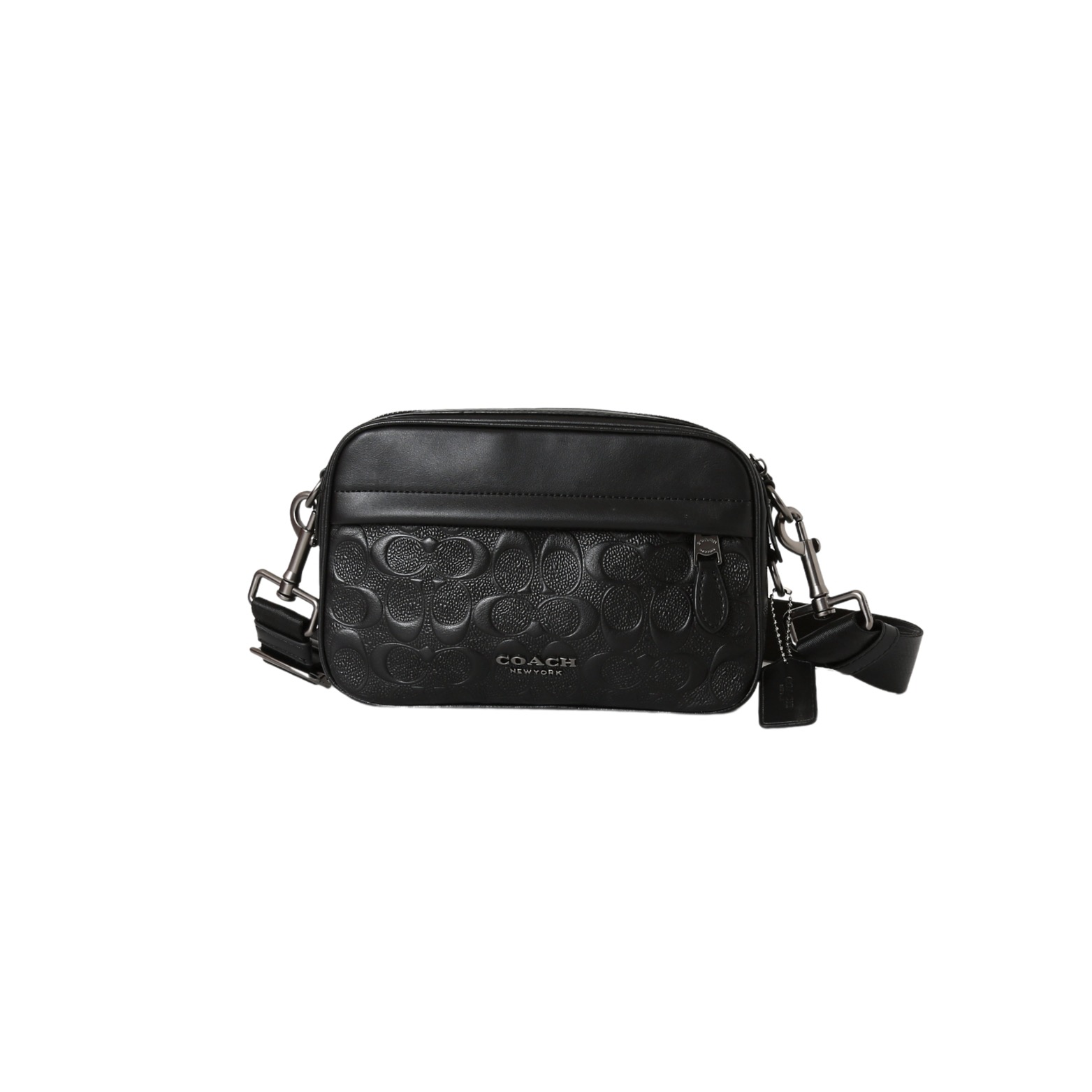 COACH蔻池 Graham 22 浮雕 皮革 相机包斜挎单肩包 男款 黑色