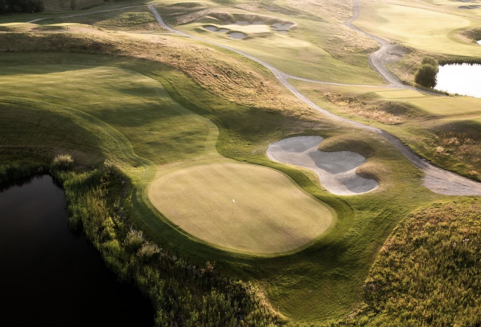 PGA 瑞典国家高尔夫设施于 2009 年 6 月正式开放,当时只有锦标赛林克斯球场的 18 个洞可供打球。十二个月后,首席造型师彼得·斯科特完成了 18 洞湖区球场和 9 洞三杆洞球场的收尾工作,打造出一系列由凯尔·菲利普斯设计的令人印象深刻的球洞。湖区球场的沙坑数量平均每洞 4 个,与林克斯球场相同,但湖区沙坑的面积是其他球场的三倍,因此如果高尔夫球手在这里偏离球道,他们可能会经常使用沙坑挖起杆。每个九洞的收尾洞都以湖泊为主要景观。第 9 洞位于水障碍的一侧,而第 17 洞是三杆洞,需要在狭窄的果岭上打 170 码,水流经球道的整个左侧。有些人可能会对斯堪的纳维亚半岛出现如此明显的美国设计感到不解,但瑞典职业高尔夫球协会 (SGA) 肯定不会介意将湖区球场宣传为"斯科纳省中心的佛罗里达一处美丽之地"。斯堪的纳维亚大师赛于 2014 年首次在湖区球场举行。该赛事于次年再次举行,斯德哥尔摩的 Alex Norén 以四杆优势获胜。